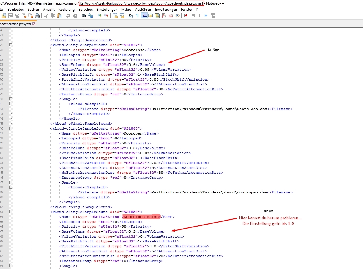 ich fand das Türpiepen beim Twindexx Zug etwas arg leise und wollte es so lauter stellen, also quasi die Sounddatei bearbeiten.
