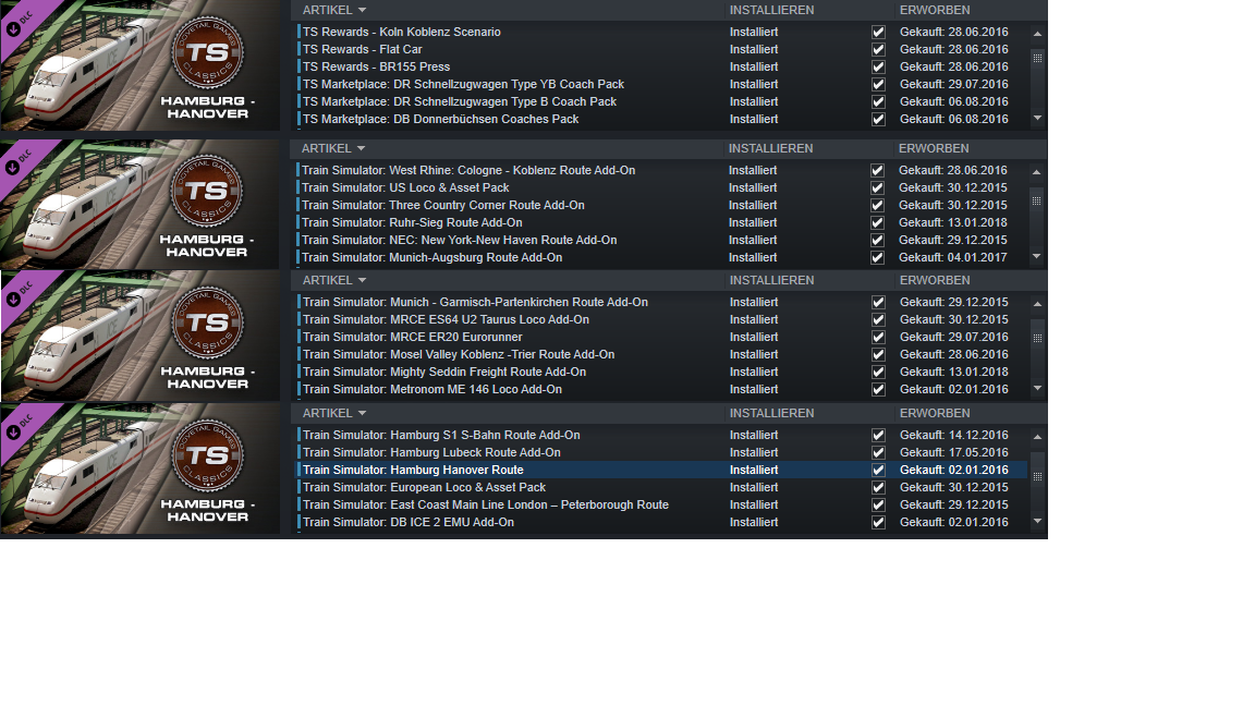 Ich habe mir neulich über TS die 181.2 gegönnt. Leider musste ich feststellen, dass diese von Virtual Railroads sei, aber diese nicht im vR Ordner existiert, geschweige denn überhaupt installiert wurde. Ich habe über Steam > Eigenschaften die Datein auf Fehler überprüfen lassen. Auch dies zeigte keine Wirkung. Auch diverse TS-Shop Maps sind nicht spielbar. Wenn ich mir selbst ein Scenario erstellen will, ist die gesamte Map weiß und ohne Objekte etc. Ich habe auch die nicht spielbaren Maps so wie die 181 deinstalliert und dann einzeln wieder neu installiert.