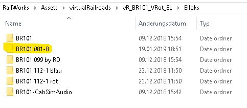 1. Zunächst den Pfad "nachbauen" in der virtualRailroads Ordnerstruktur, unter Elloks den Folder BR101 081-8 anlegen: