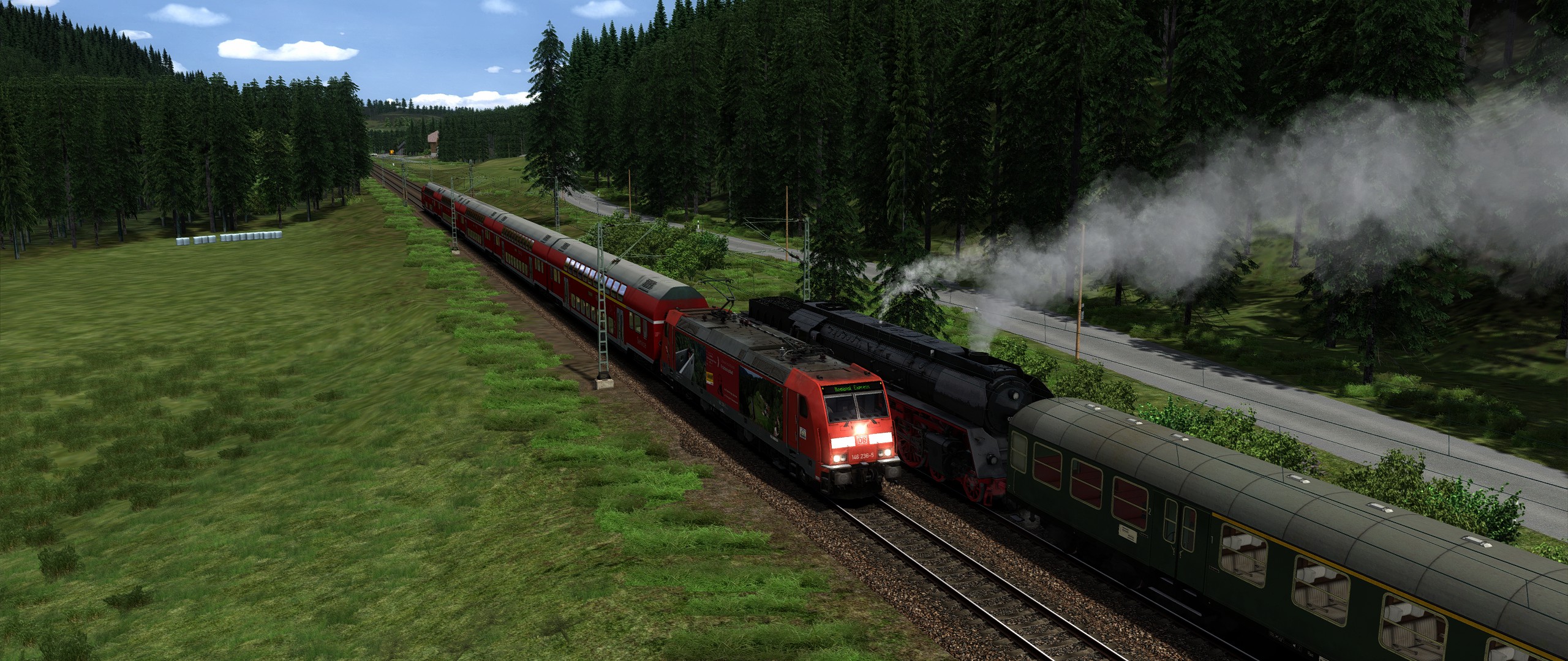 auch die Gegenzüge ( Regionalexpress ) sind nach dem aktuellen Fahrplänen eingefügt . Zum Einsatz kommen die 185er Repaints von raildesigns