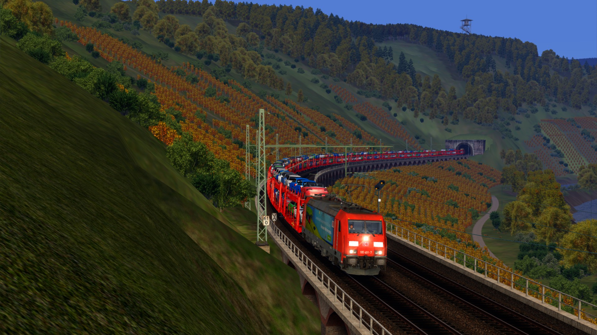 Ein Autotransportzug im Moseltal an einem sonnigen Herbsttag!