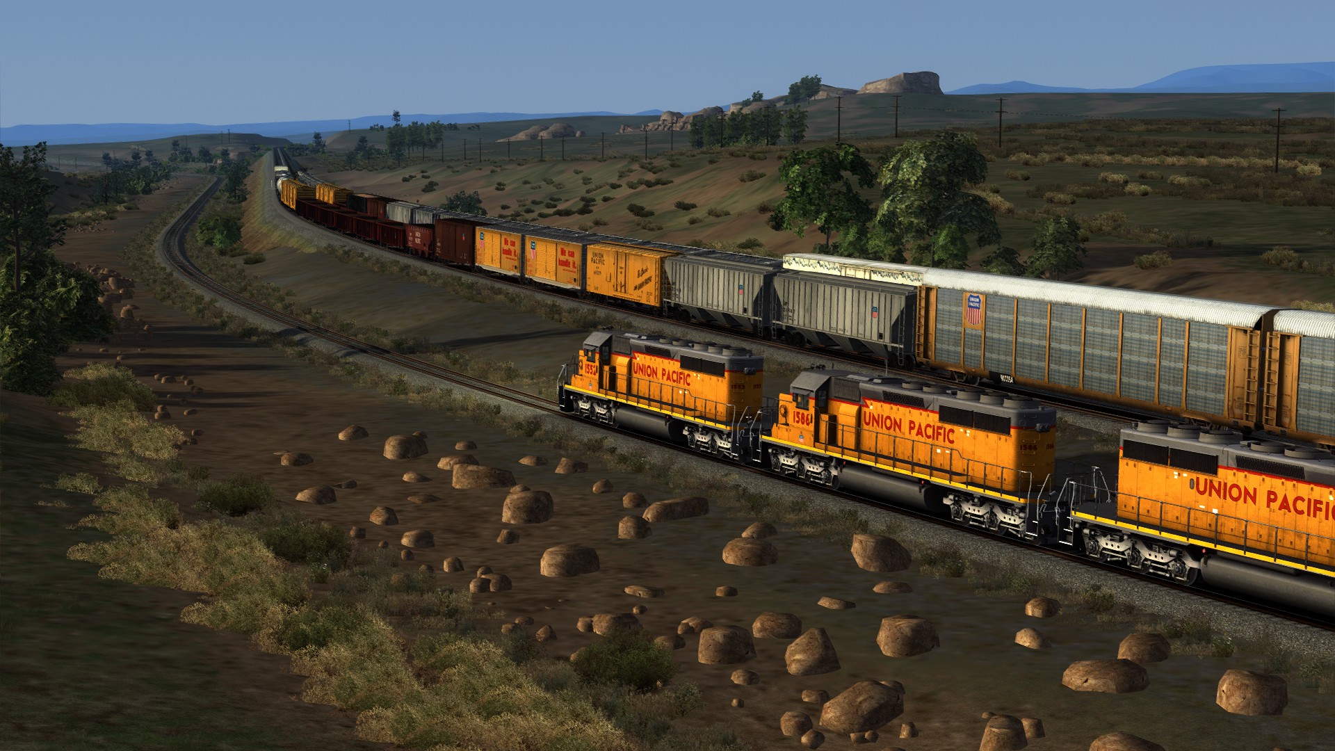 Mit der EMD SD40-2 auf den Weg von Perkins über das Gleis 3 von Sherman Hill nach Laramie......