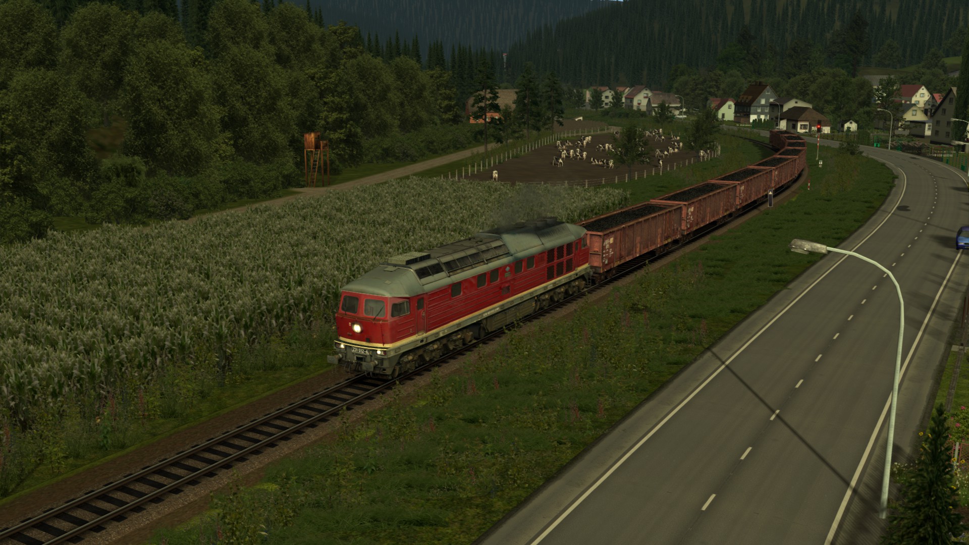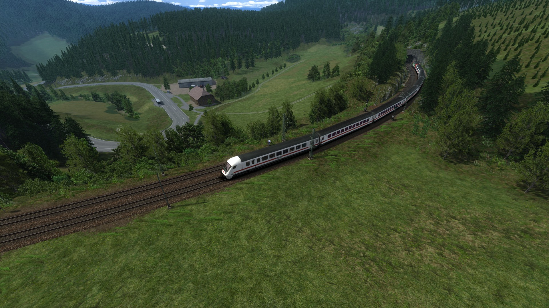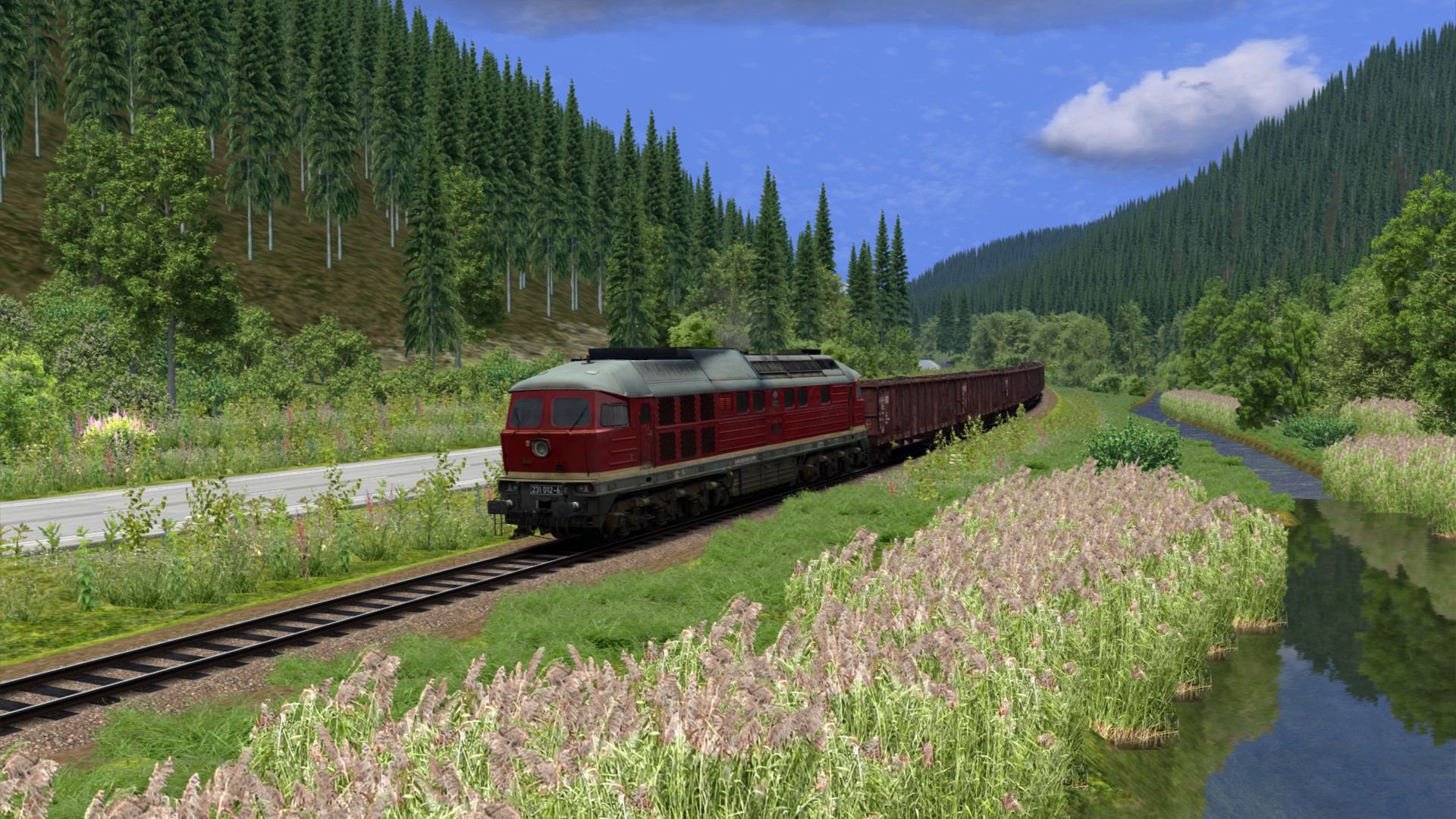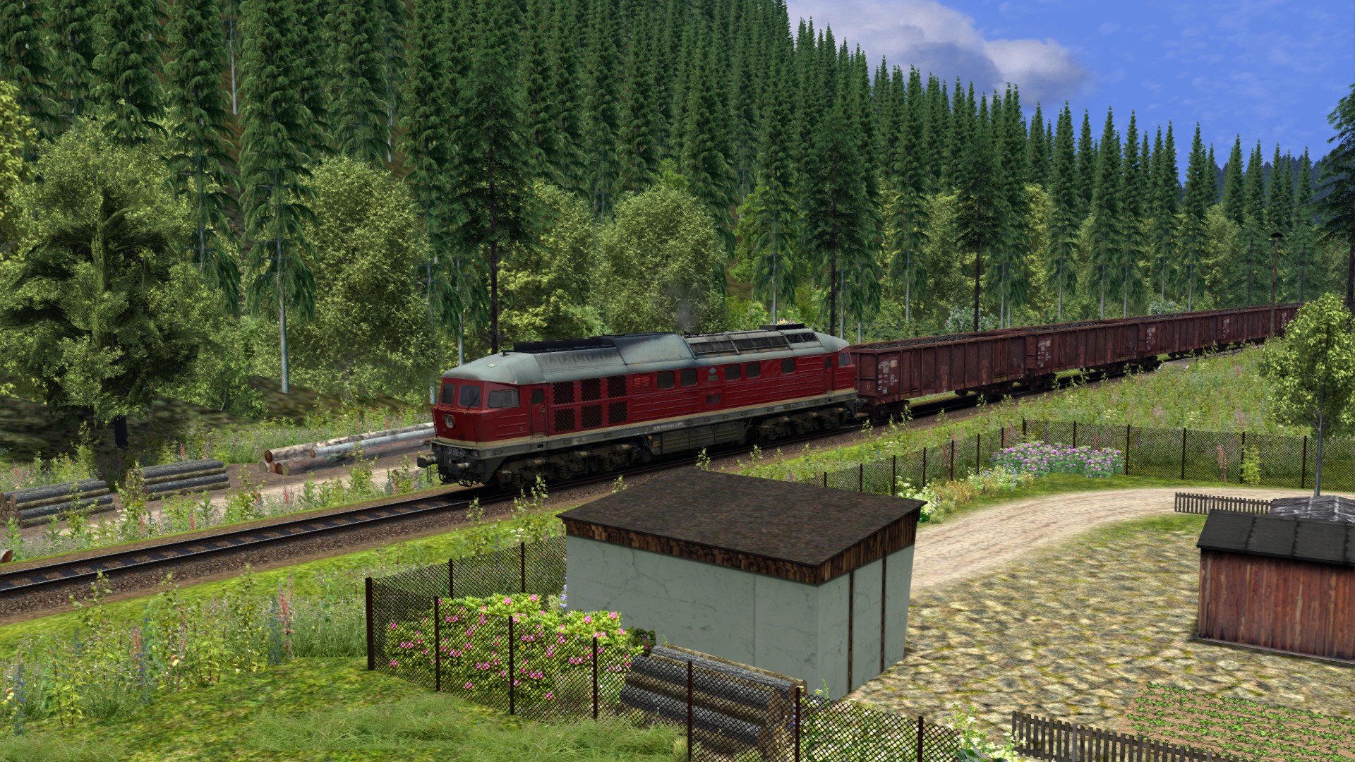 Eine Eisenbahn ohne großes Interesse. Nicht hässlich, aber auch nicht schön. Die hellen Farben der neuen Bäume stimmen nicht mit den alten verblassten Texturen überein. Das Material ist einfach gut für KI-Züge. Mit der vR-Spur und einigen Modifikationen kann es optisch ansprechend werden. Aber der Kurs wird langweilig bleiben. Es gibt nur wenige Variationen der Geschwindigkeit und nicht viele Steigungen. -