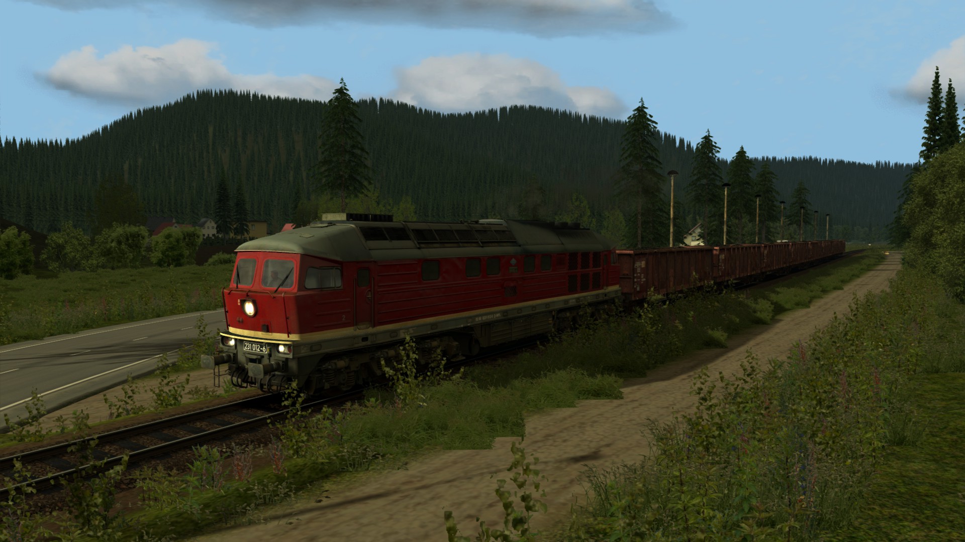 Eine Eisenbahn ohne großes Interesse. Nicht hässlich, aber auch nicht schön. Die hellen Farben der neuen Bäume stimmen nicht mit den alten verblassten Texturen überein. Das Material ist einfach gut für KI-Züge. Mit der vR-Spur und einigen Modifikationen kann es optisch ansprechend werden. Aber der Kurs wird langweilig bleiben. Es gibt nur wenige Variationen der Geschwindigkeit und nicht viele Steigungen. -