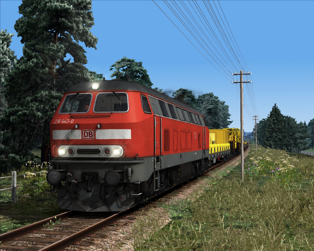 BR 218 443 mit Kranzug nach Hosvenn. Zwischen Hosvenn und Wildau starten ab nächste Woche Umbauarbeiten. Hosvenn soll nämlich wieder an den Regionalverkehr angeschlossen werden.