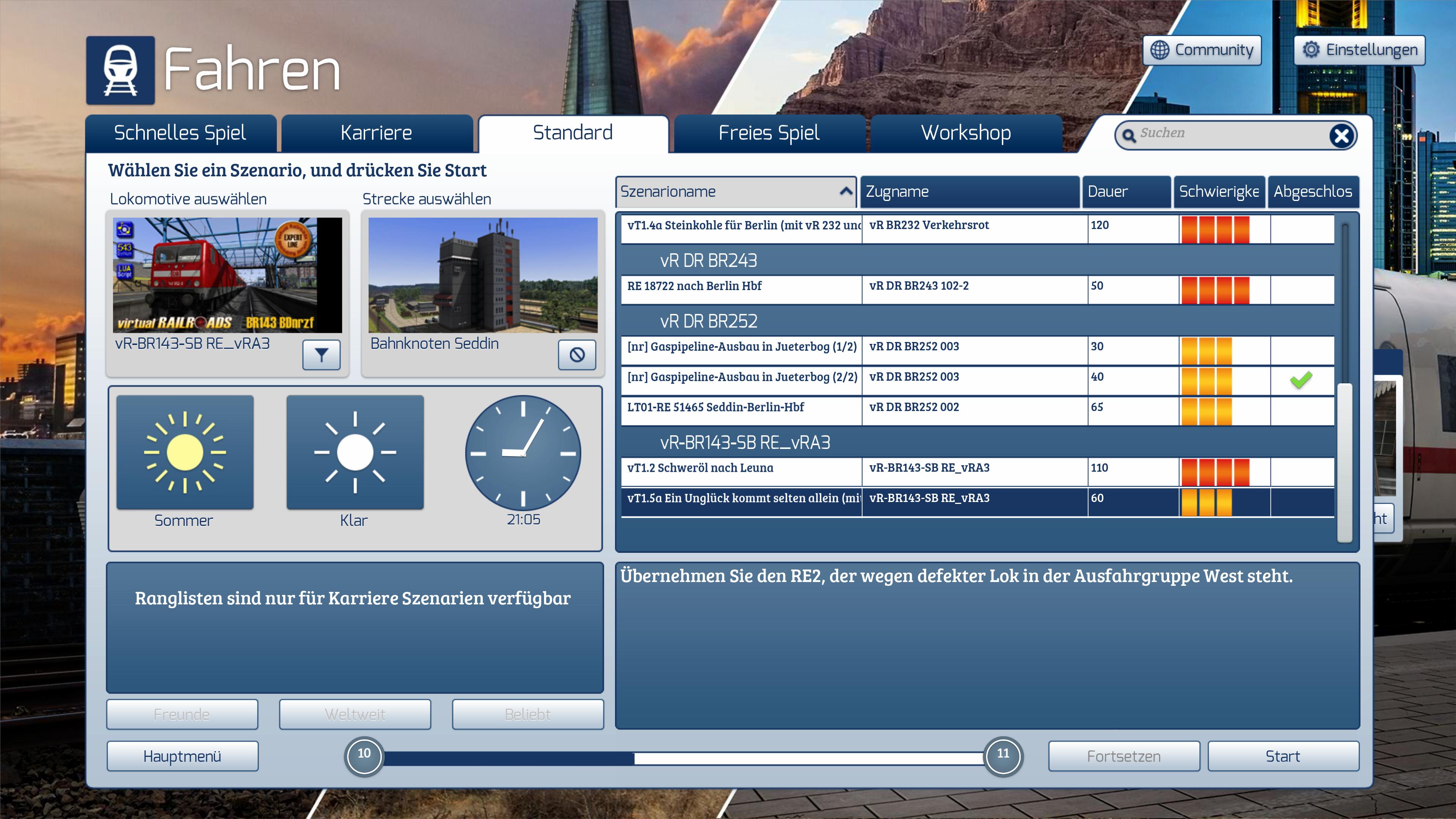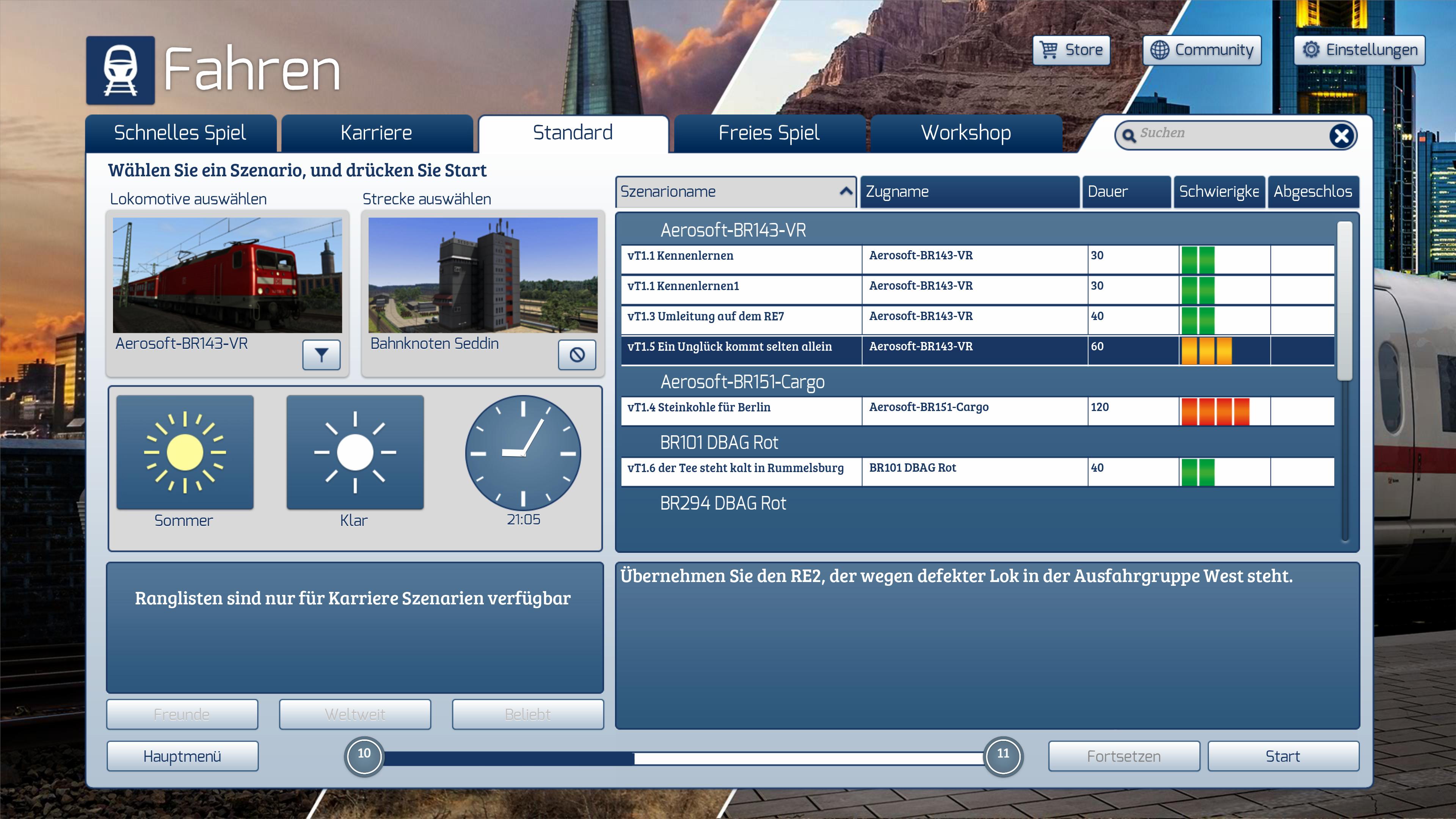 Ich möchte daraufhinweisen, daß ich an dem Szenario nichts verändert habe oder etwas verändern wollte, außerdem ist die fehlende Lok im Asset-Ordner vorhanden. Die Variante mit der Aerosoft-Lok hat einwandfrei funktioniert.