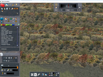 Baue die Lahntalbahn. Suche eine passable Gestaltungsmöglichkeit für die vielen bewaldeten Hänge rechts und links des Flusstals. normale Decals flimmern.