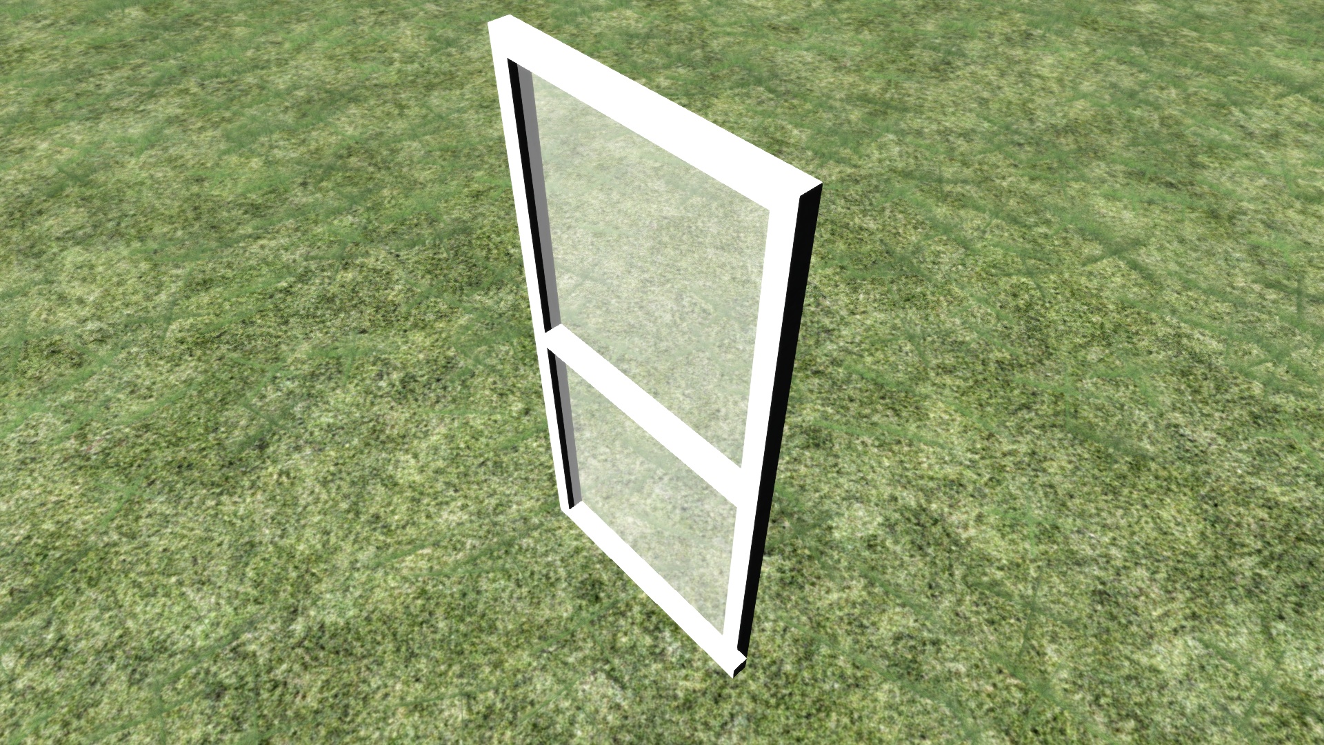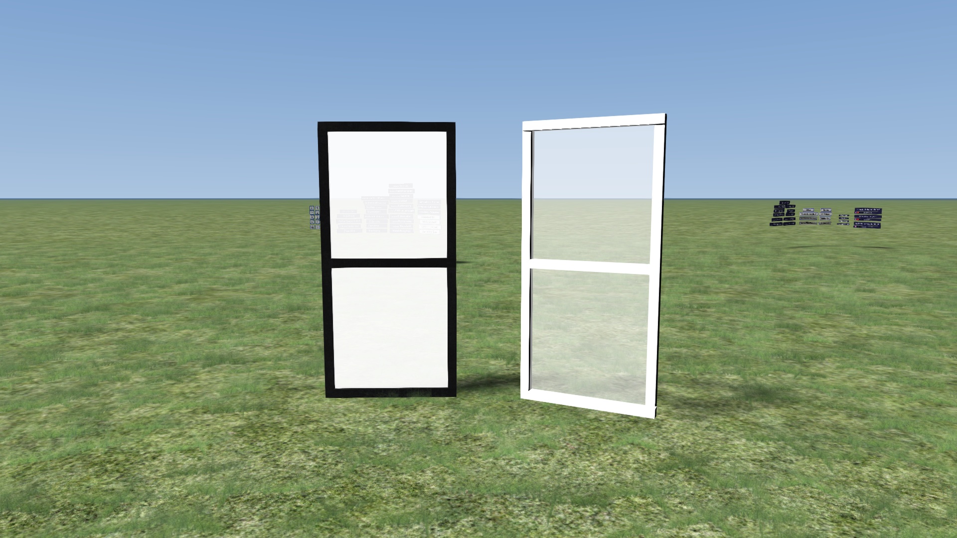 Das Ziel ist eine 3 Meter breite und ca. 6 Meter hohe Glasscheibe mit einem schwarzen Rahmen (siehe Bild unten), jedoch erscheint sie nach dem Export in Richtung Licht in weiß und auf der anderen Seite in schwarz (siehe noch weiter unten), ich vermute deshalb mal, dass es am Shader oder der UV-Map/Textur liegt.