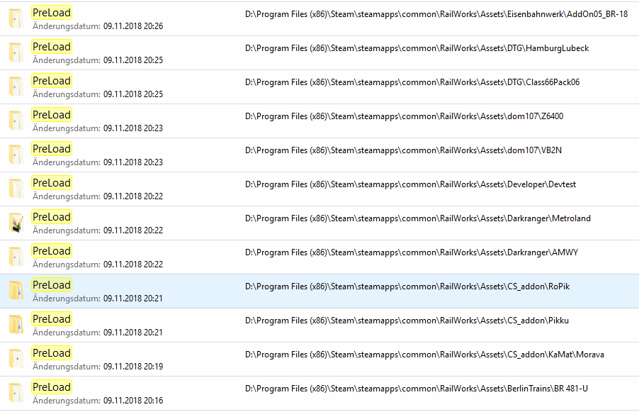 Like the Kuju folder in assets. The preload folder has a subfolder called Hagen - Sieg where the preloads for the german trains are.