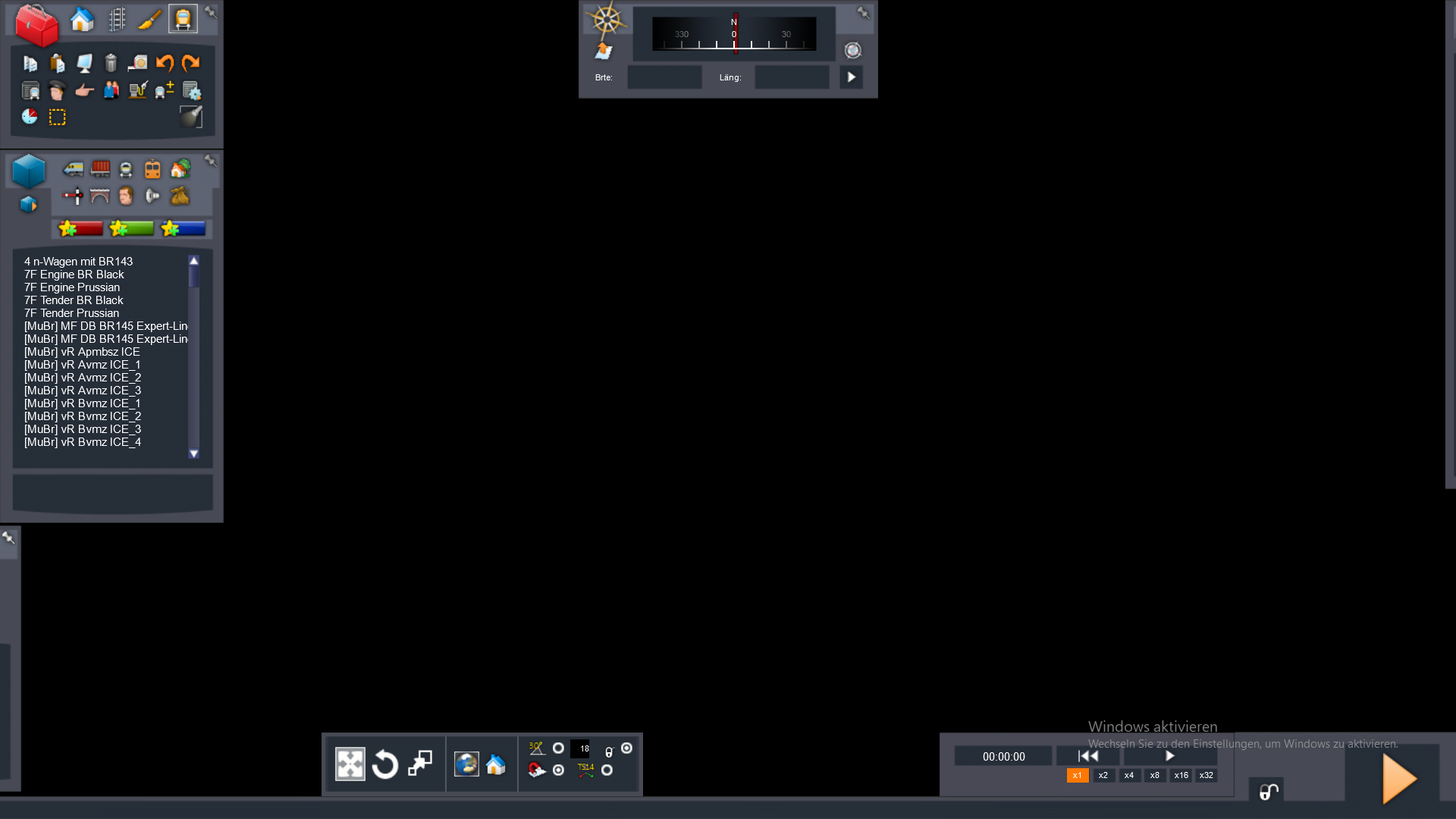 Seit einiger Zeit habe ich ein Problem mit der Strecke Münster-Bremen. Meine Szenarios kann ich nämlich nur in der 32 Bit-Version starten. Diese stürzen aber nach einigen Minuten auch ab. Bei der 64 Bit-Version bleibt der Editor komplett Schwarz (siehe Bild). Neuintallation hat nicht funktioniert!