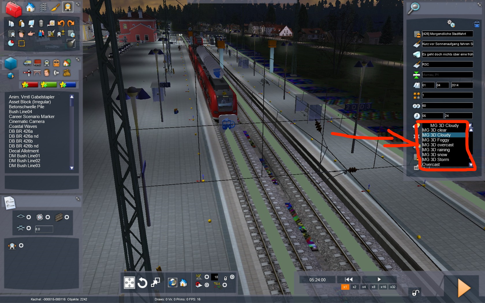 --> In den Szenarioeditor und das Wetter wieder zurückstellen. Das Wetter was ihr einstellen müsst, fängt mit