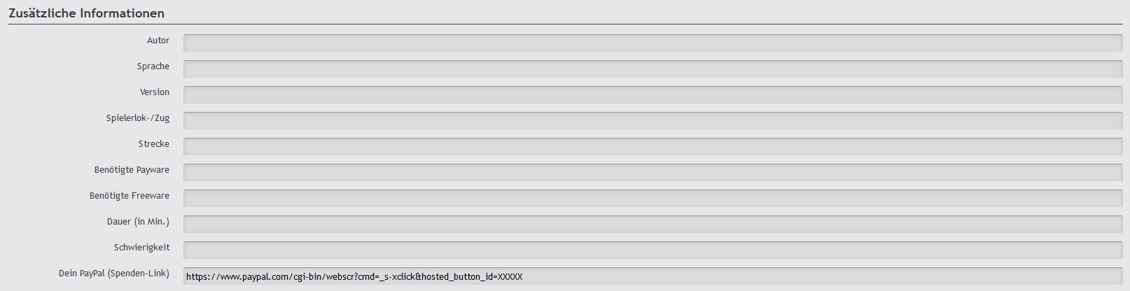Damit der Spendenbutton angezeigt wird, müsst ihr beim Einsenden oder Ändern eures Download-Eintrags, euren PayPal-Spendenlink angeben (unter "Dein PayPal (Spenden-Link).
