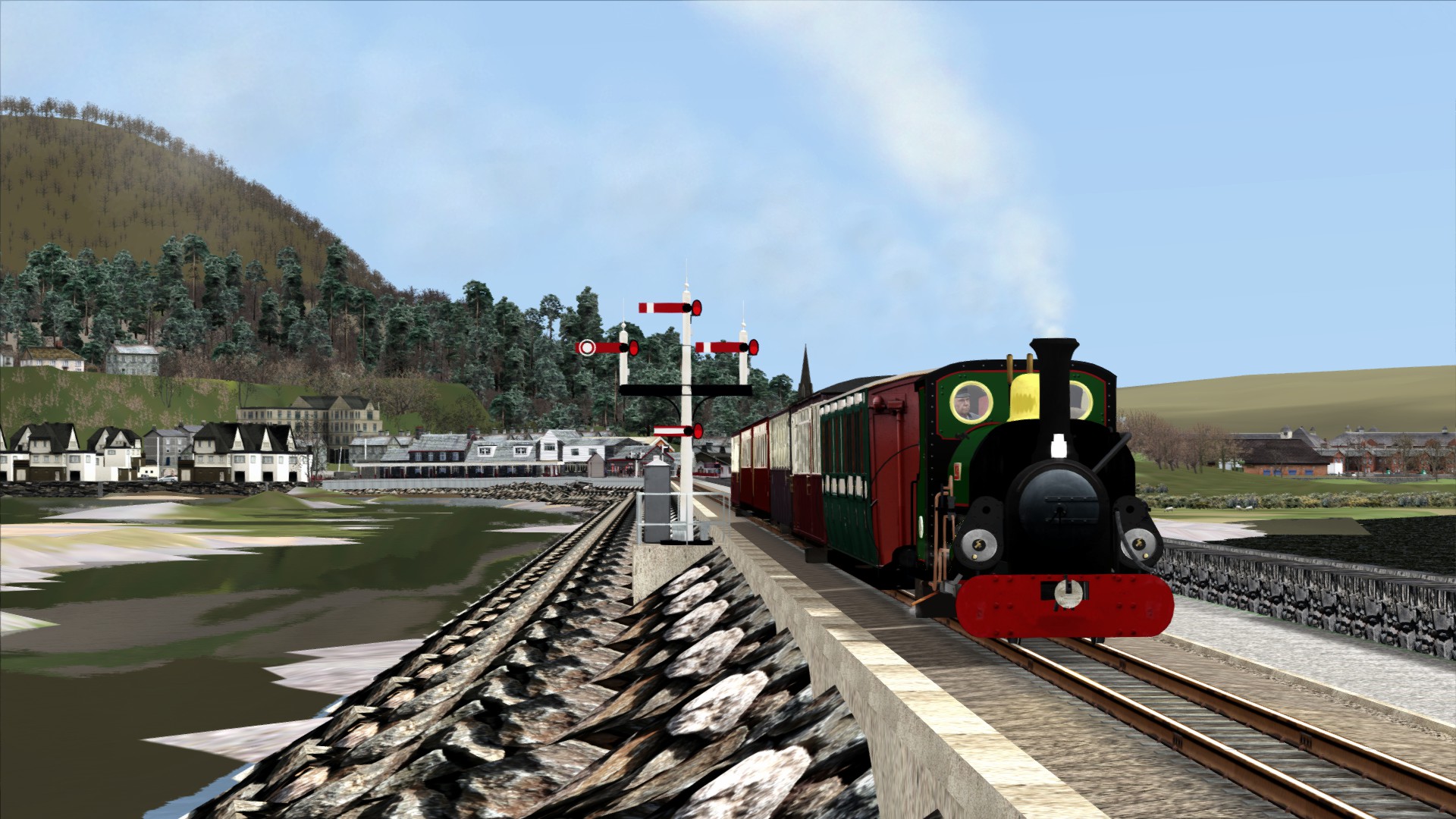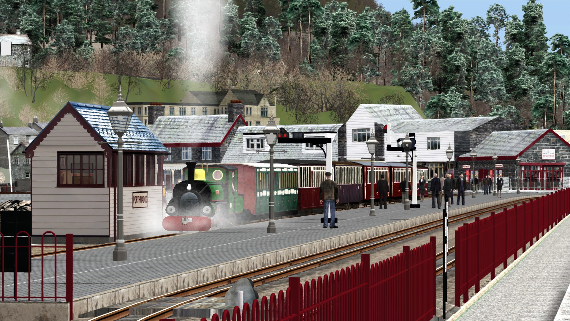 Auf schmaler Spur durch Wales auf der Ffestiniog Railway von Porthmadog nach Blaenau Ffestiniog. Leider endete das Szenario in Tan-y-Bwlch weil der Gegenzug ''zweigleisig'' fuhr...