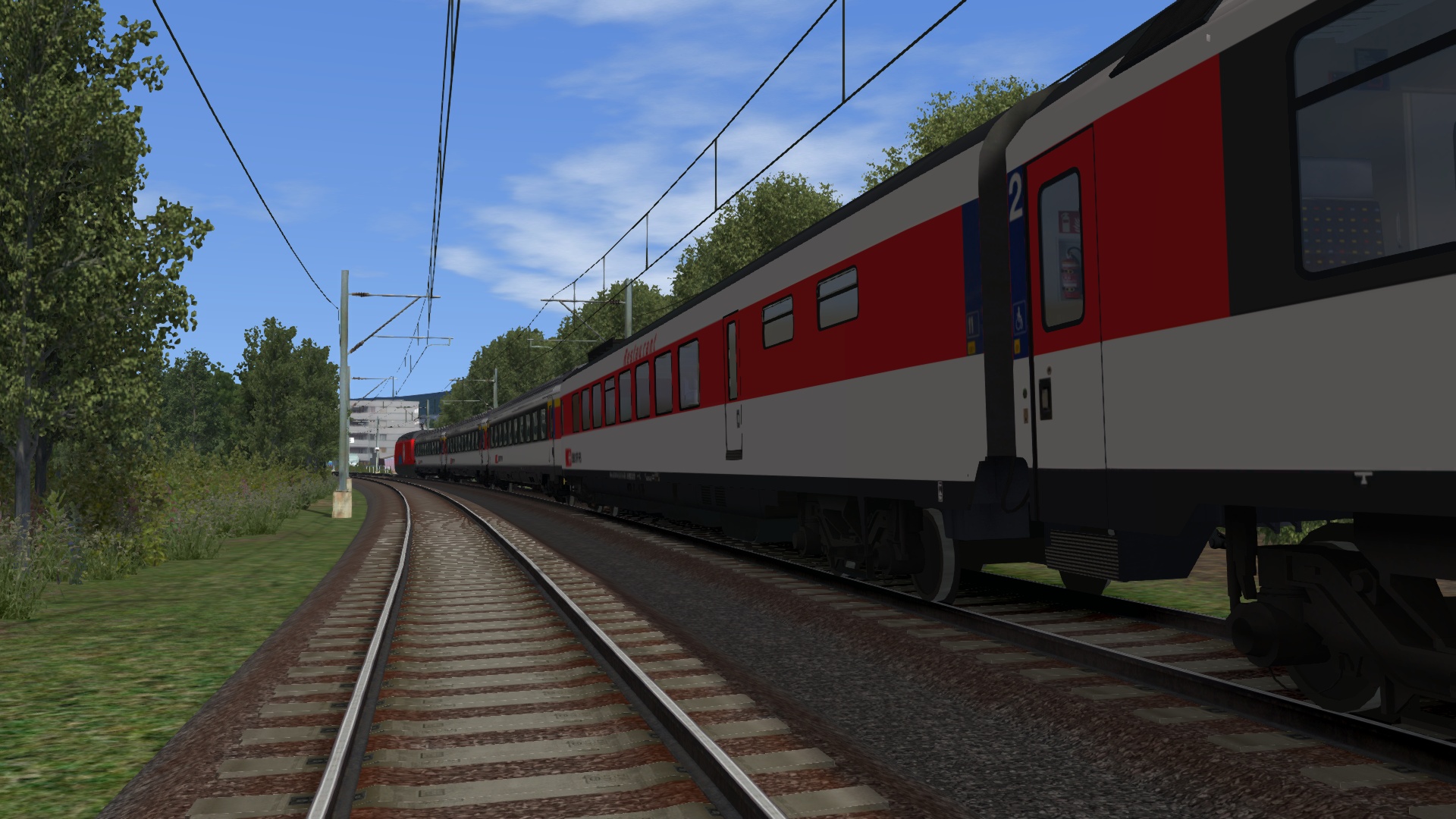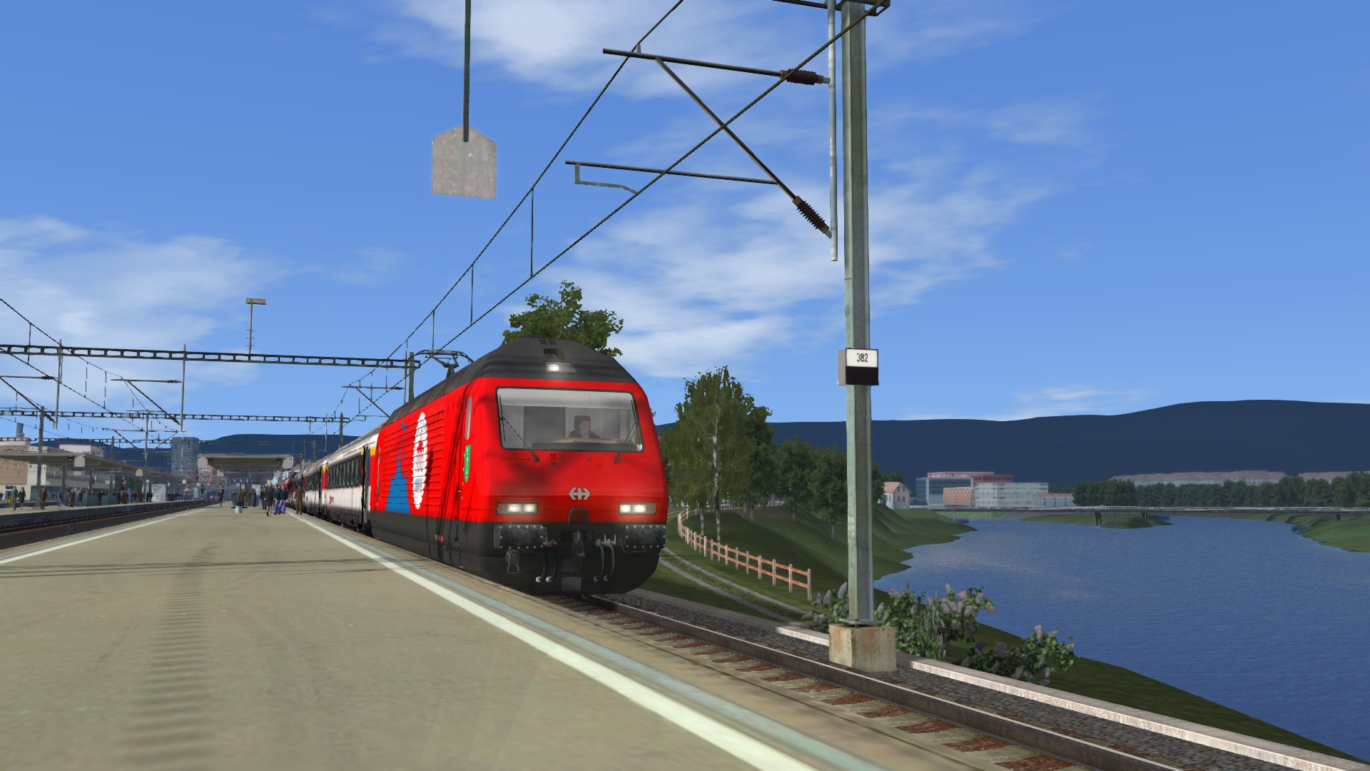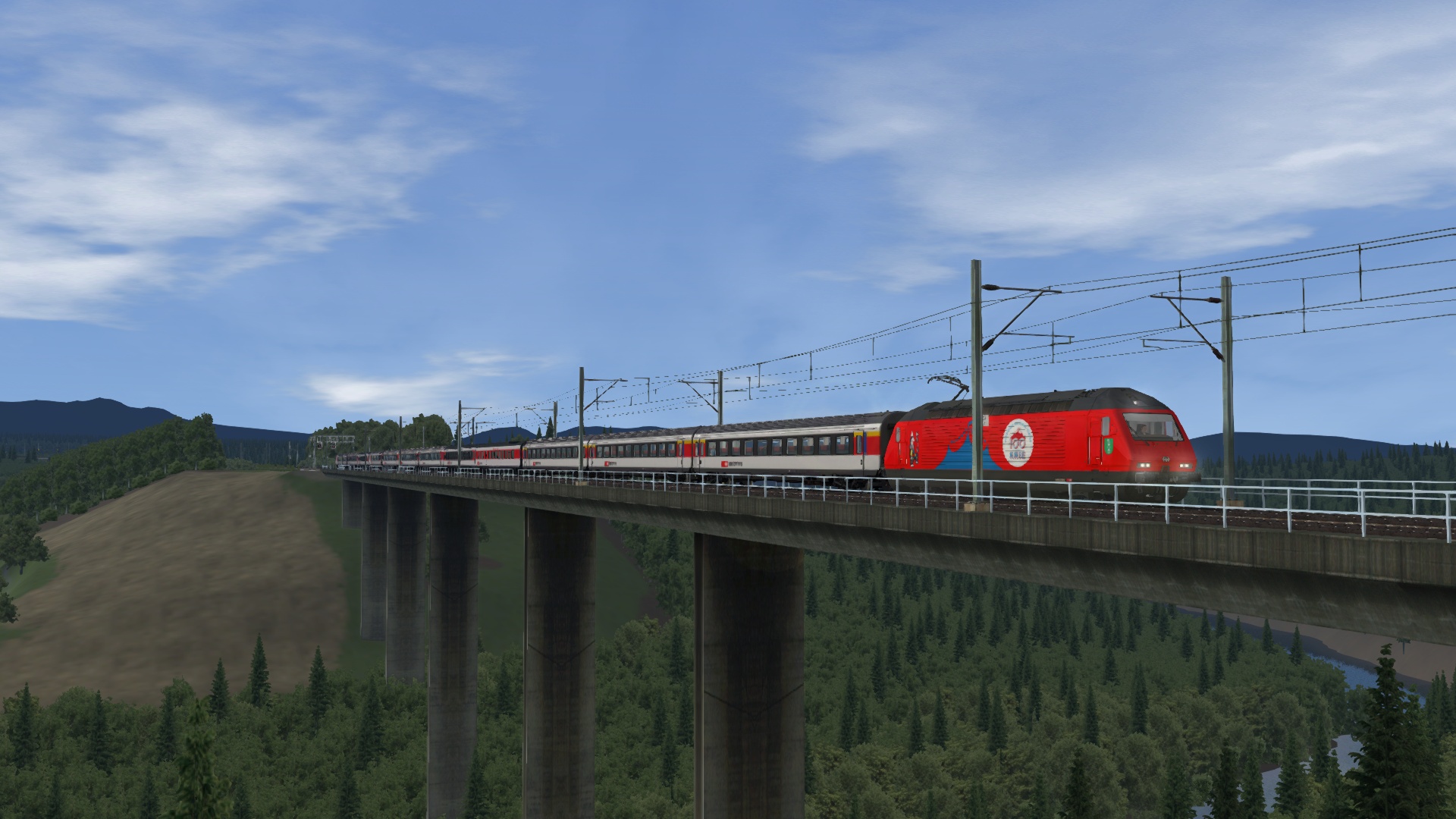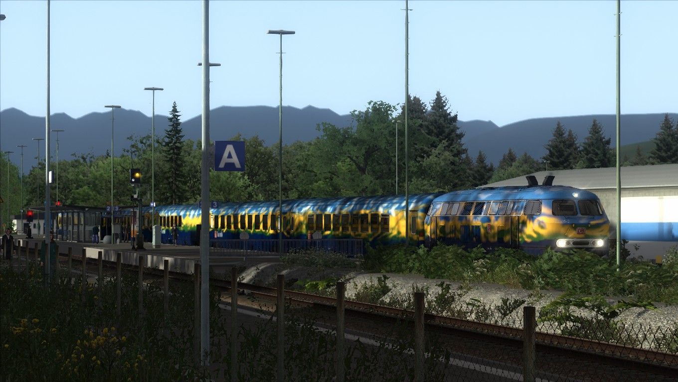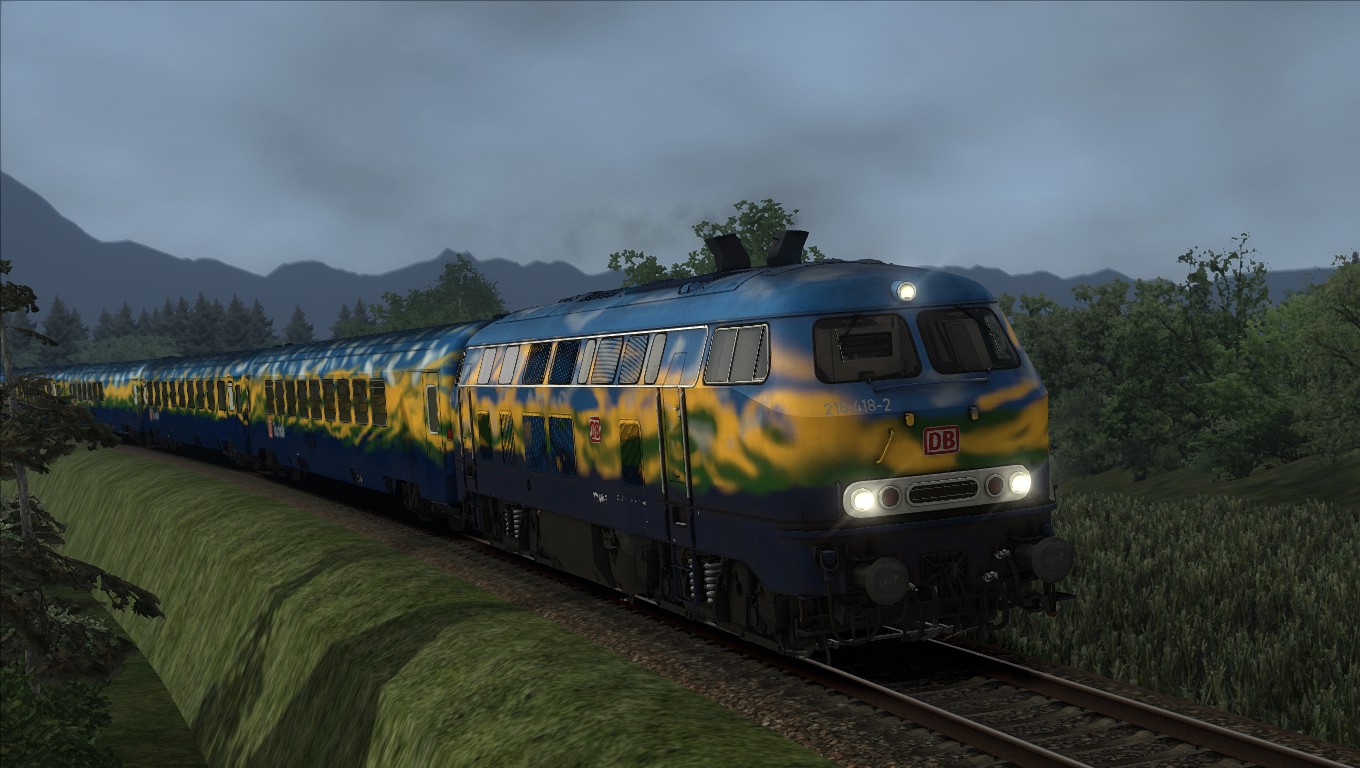 Klasse Szenario von @Lele271103 etwas umgebaut, um die von mir repainteten Wagen herumzufahren. Herrlich am späten Nachmittag gen Freiburg.