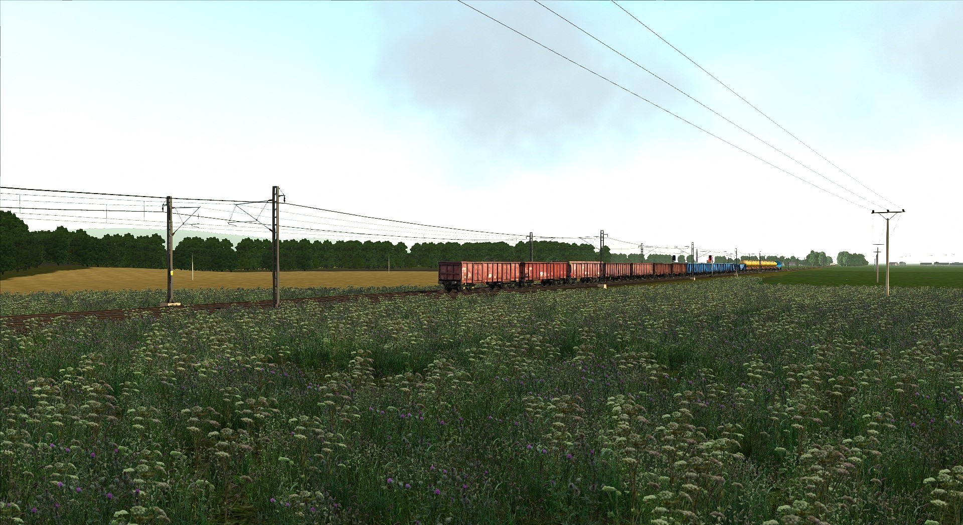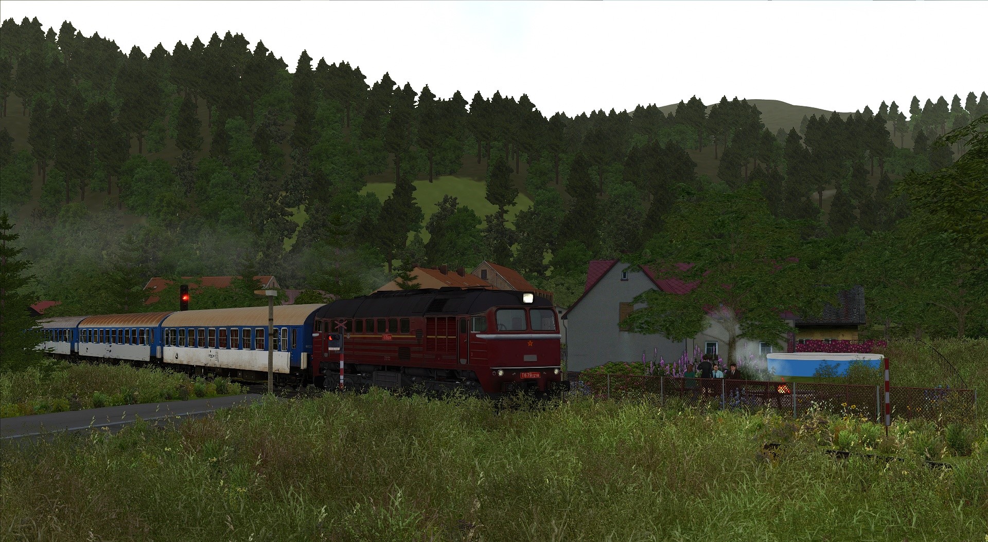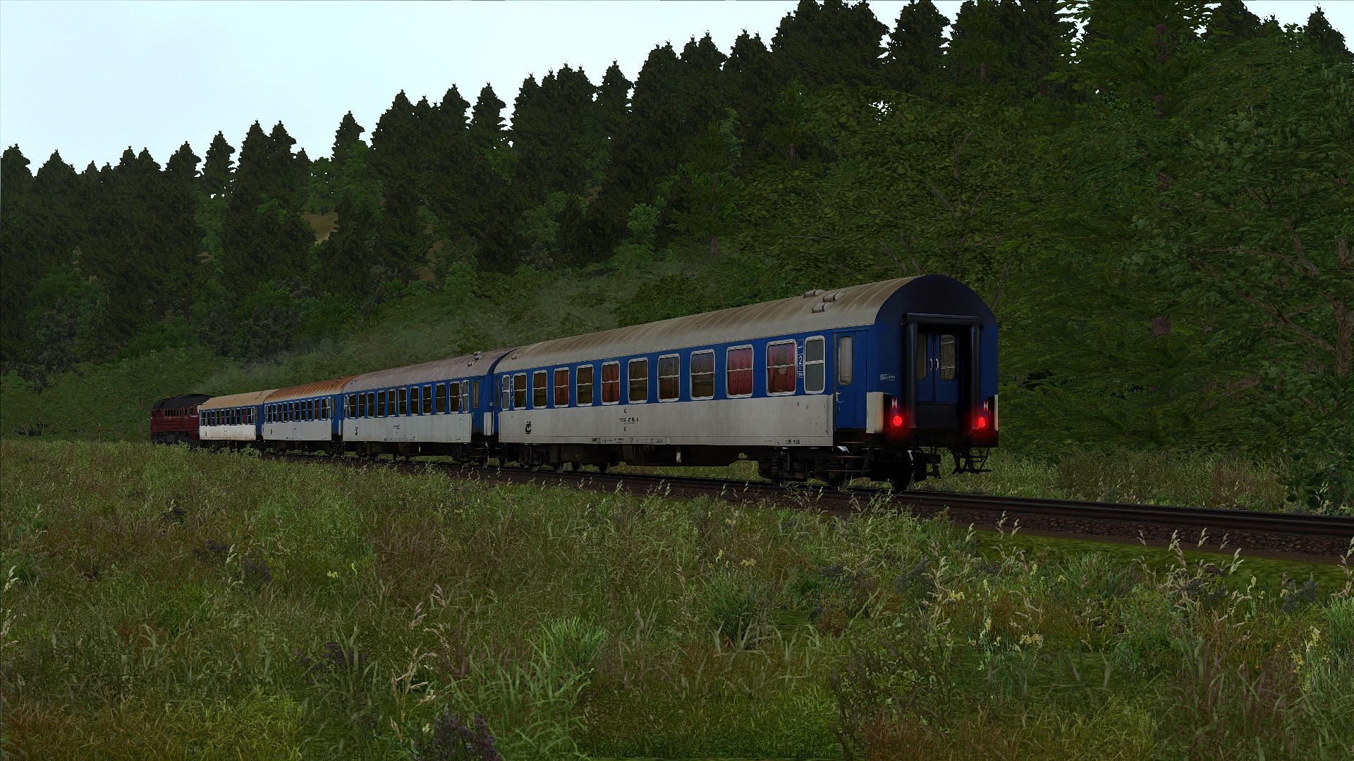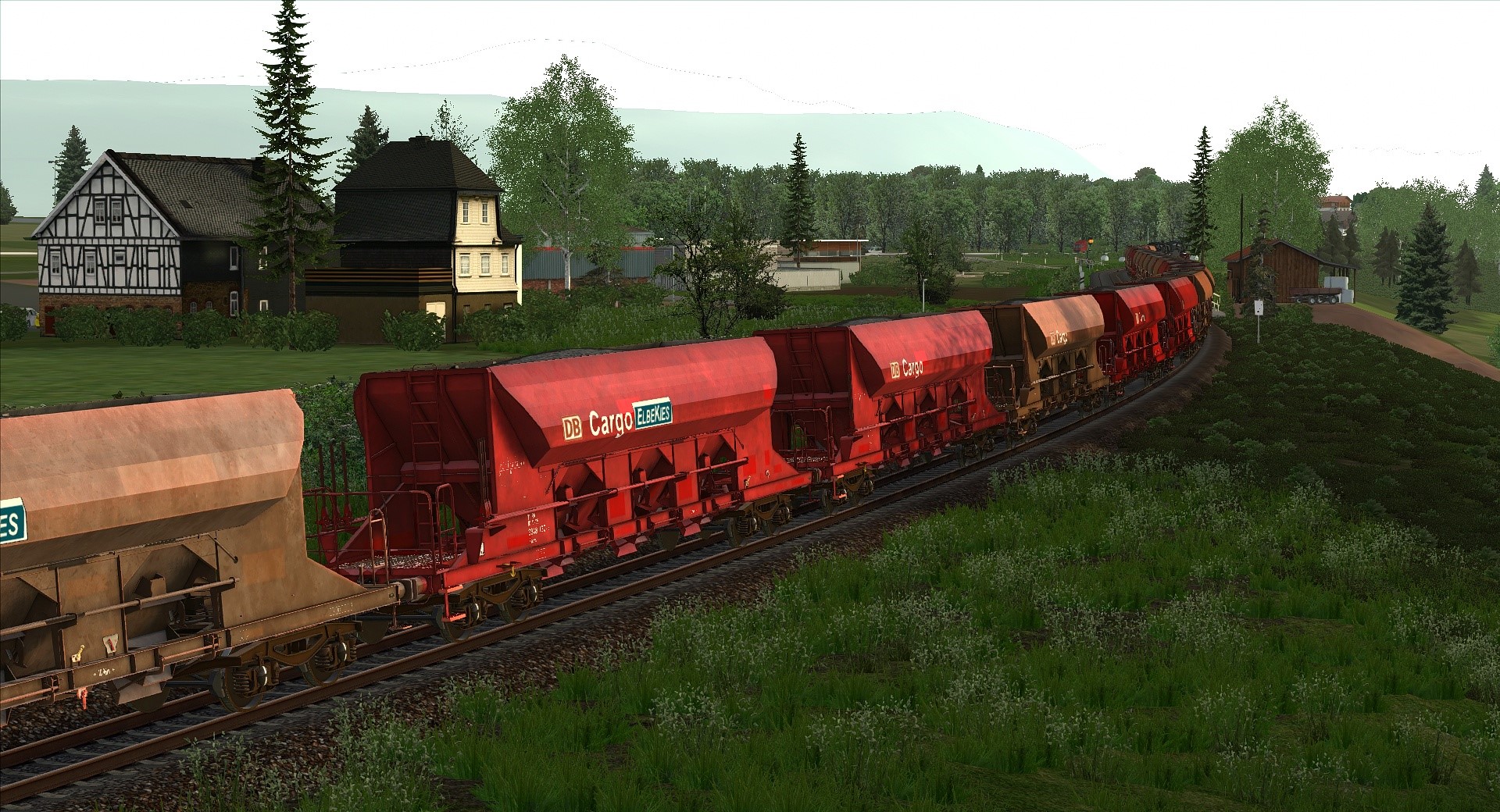 Klasse Szenario von @Lele271103 etwas umgebaut, um die von mir repainteten Wagen herumzufahren. Herrlich am späten Nachmittag gen Freiburg.