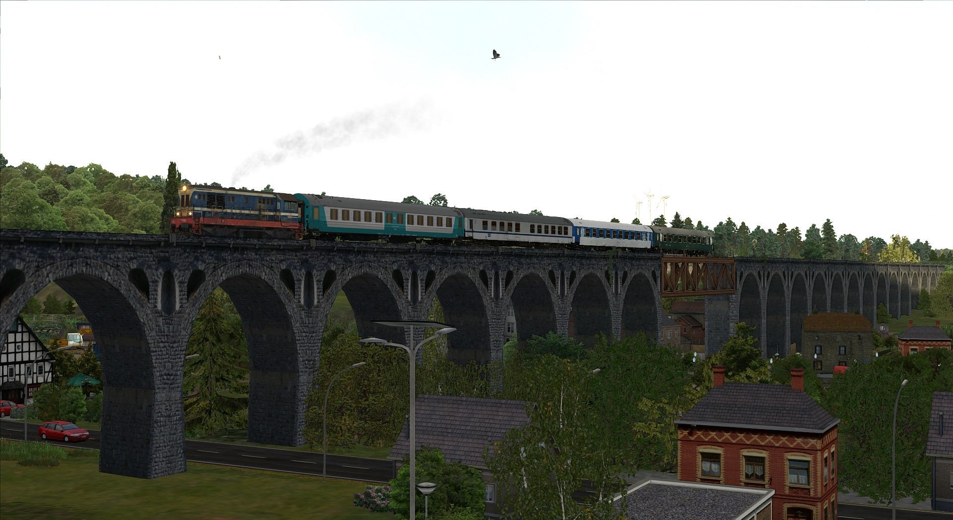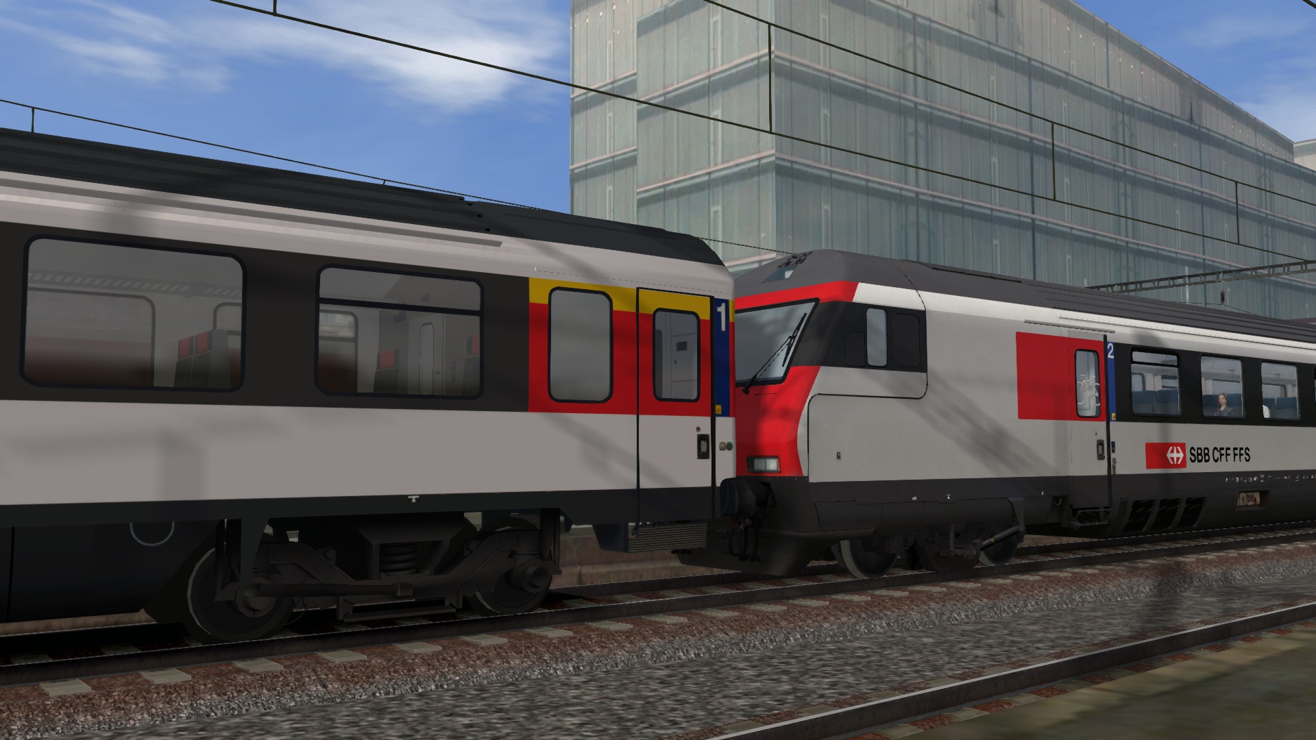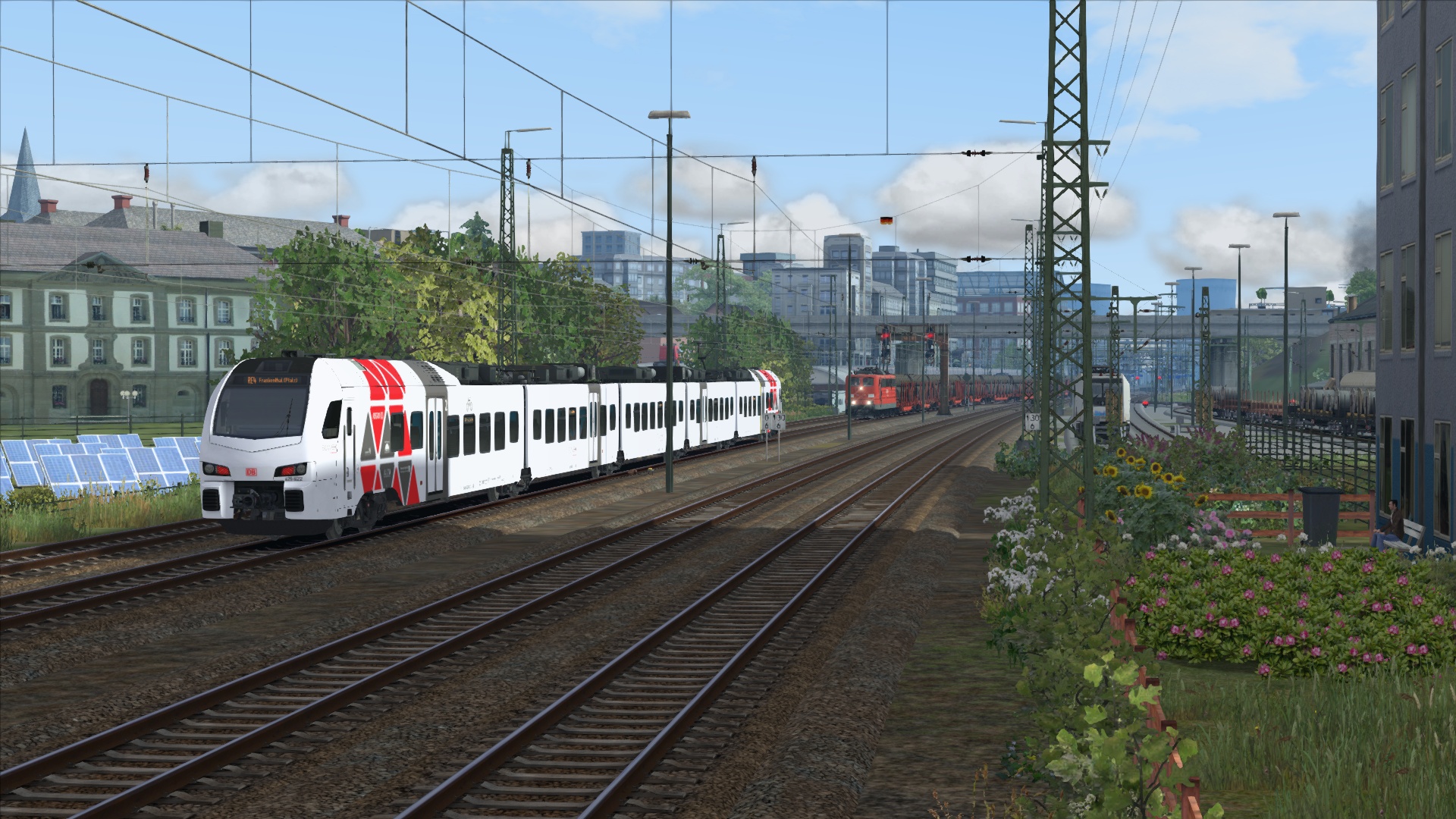 Klasse Szenario von @Lele271103 etwas umgebaut, um die von mir repainteten Wagen herumzufahren. Herrlich am späten Nachmittag gen Freiburg.