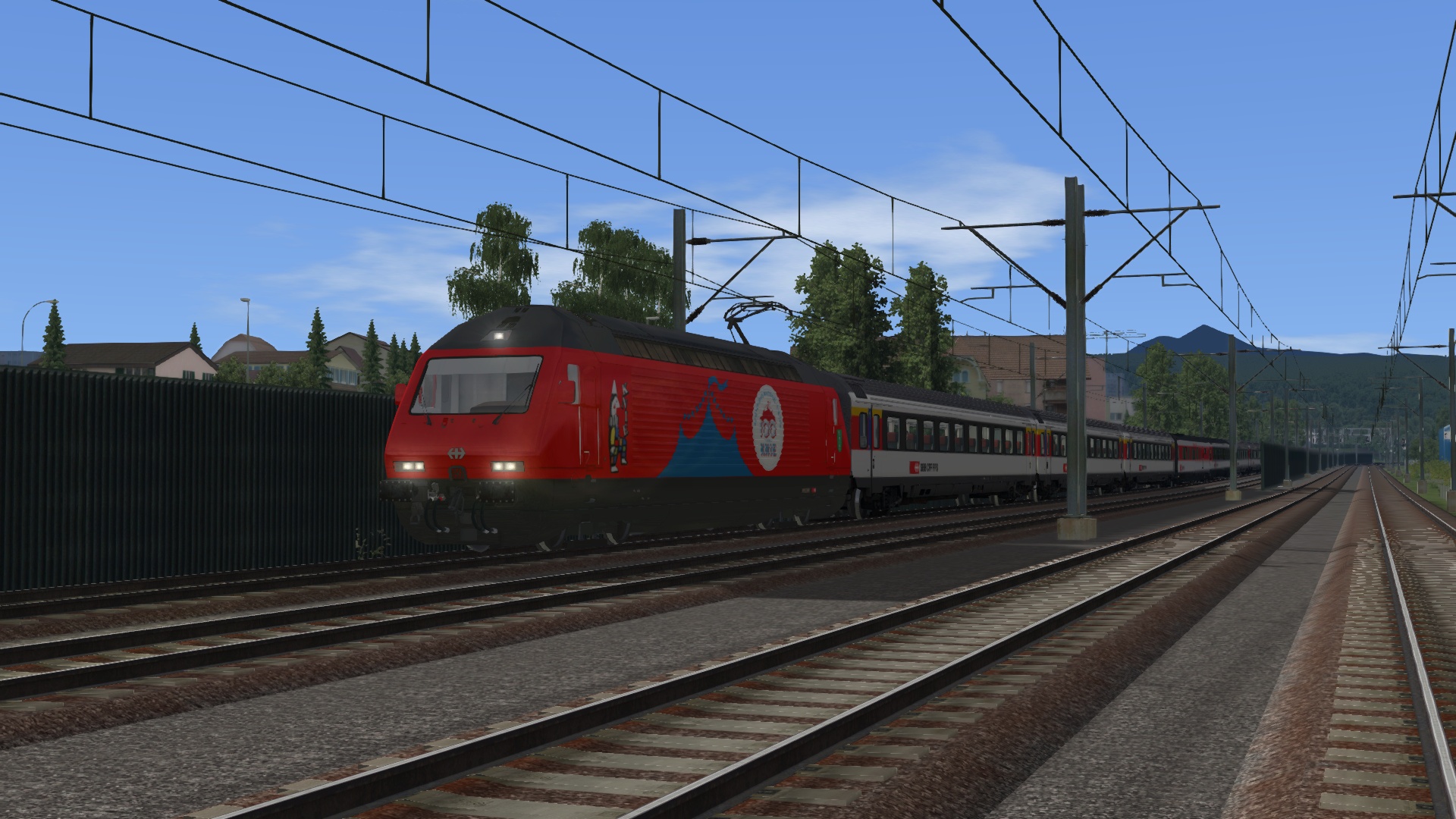 Klasse Szenario von @Lele271103 etwas umgebaut, um die von mir repainteten Wagen herumzufahren. Herrlich am späten Nachmittag gen Freiburg.