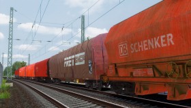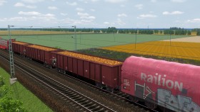 ein Güterzug in Richtung Süden unterwegs, der in der Realität so auch schon mal unterwegs war.