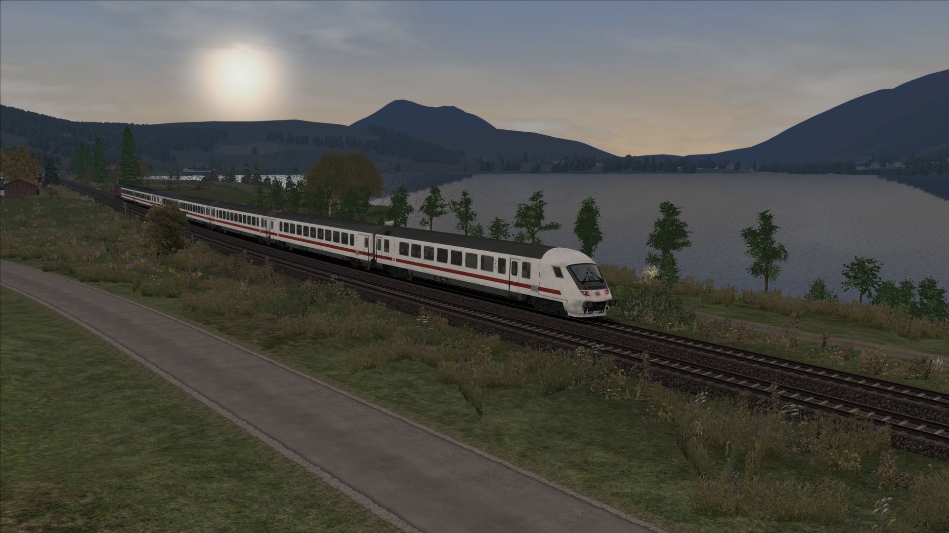 Ein morgendlicher IC-Zug zwischen Lindau und Kempten, der von einem BR 218 gezogen wurde. ![]()