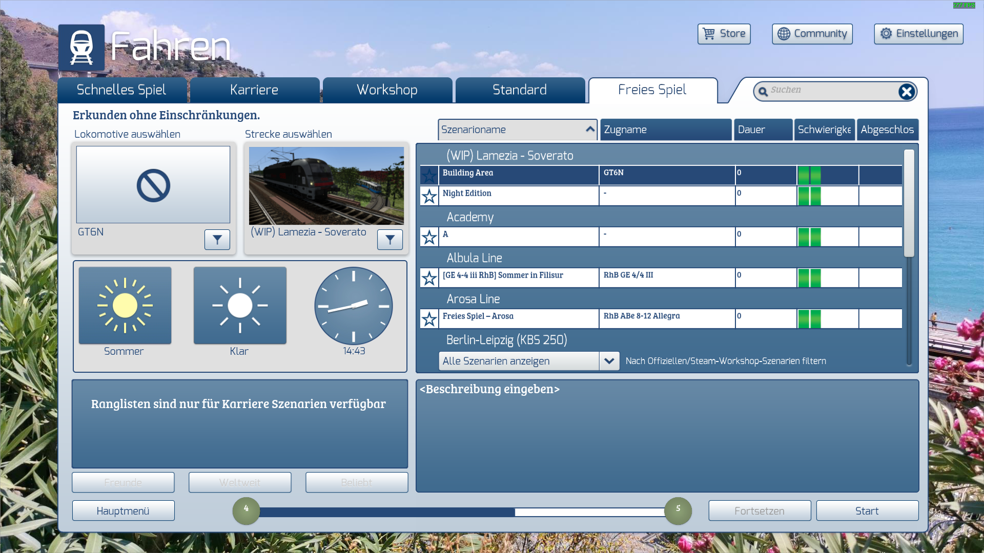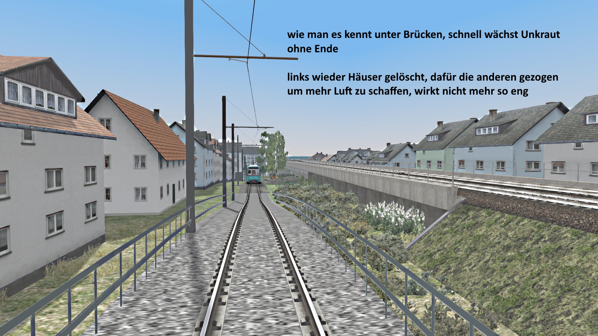 Realistischer wäre noch die Klangkulisse der begrünten Gleise, diese reduzieren sehr stark den Lärm der Trams. Ein gutes Stück als Beispiel ist zwischen Wallisellen, Neugut, via Wallisellen, Glatt (Tram) und Bahnhof Wallisellen; Betonierte Fahrbahnen bei den Haltestellen, begrünte Fahrbahn zwischen Bahnhof Wallisellen und der Brücke über die Bahngleise des Bahnhofs Wallisellen, sowie die betonierten Schwellensegmente zwischen Neugut und Glatt (Glatt Zentrum). Alle drei Typen machen unterschiedlich lauten lärm und dies wird auch im Spiel sozusagen umgesetzt. Nur bei Haltestellen wird eine Fahrbahn betoniert, rundum wird die begrünte Fahrbahn verwendet, um weniger Lärm verursachen.