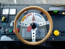 Hier ein Bild eines Lenkrad der Tram 2000 mit den ersichtlichen Geschwindigkeiten...