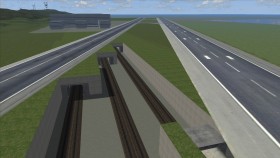• Zur Abwechslung etwas am alten Stück bearbeitet. Wo die Verbindungskurve zum Depot die Hauptstrecke überfliegt, wurden Stromschienen verbaut. Dieses Stück habe ich etwas aufgewertet und mehr Details gegeben - siehe Bildunterschrift. Eigentlich wollte ich euch eine Payware Strecke ersparen, und zwar die Schaffhausen - Kreuzlingen. Schnell bemerkte ich, dass die Euro Balisen der Zugsicherung im Addon enthalten sind, sowie auch die Halte Tafeln für die Zuglänge. *facepalm*