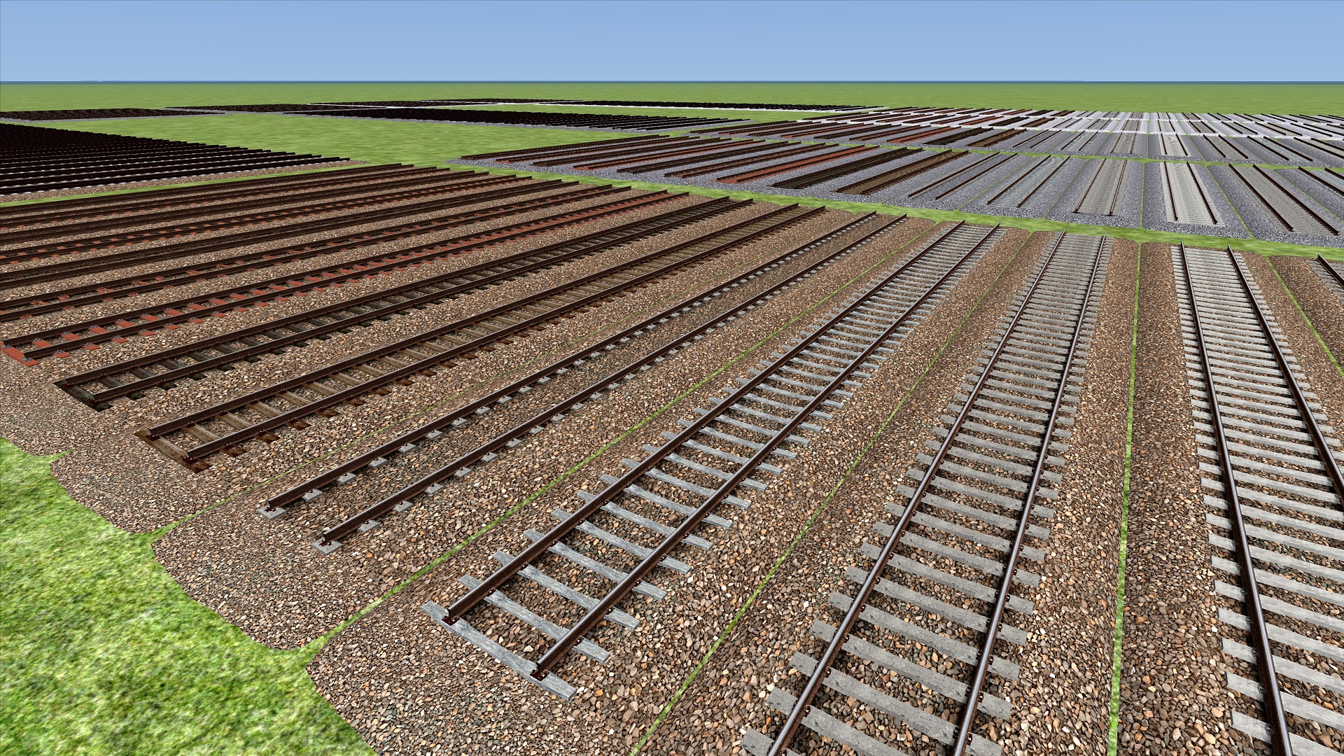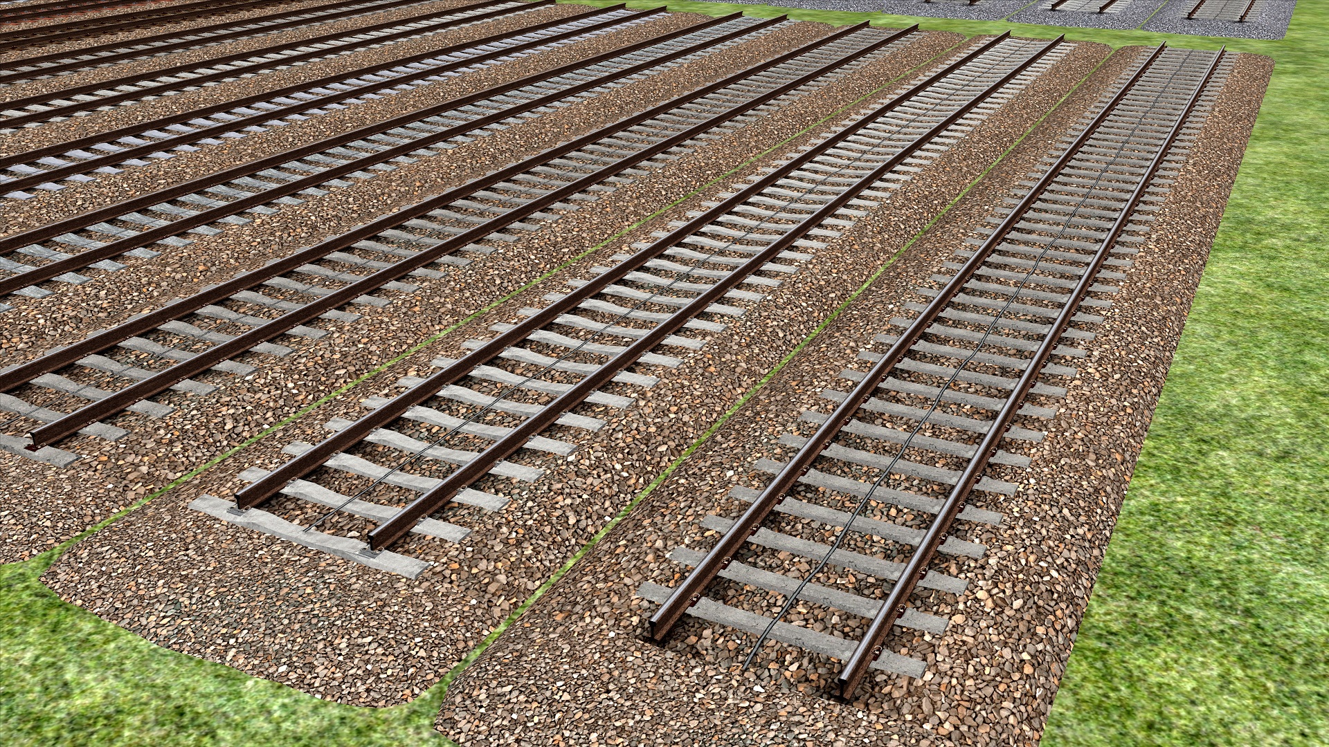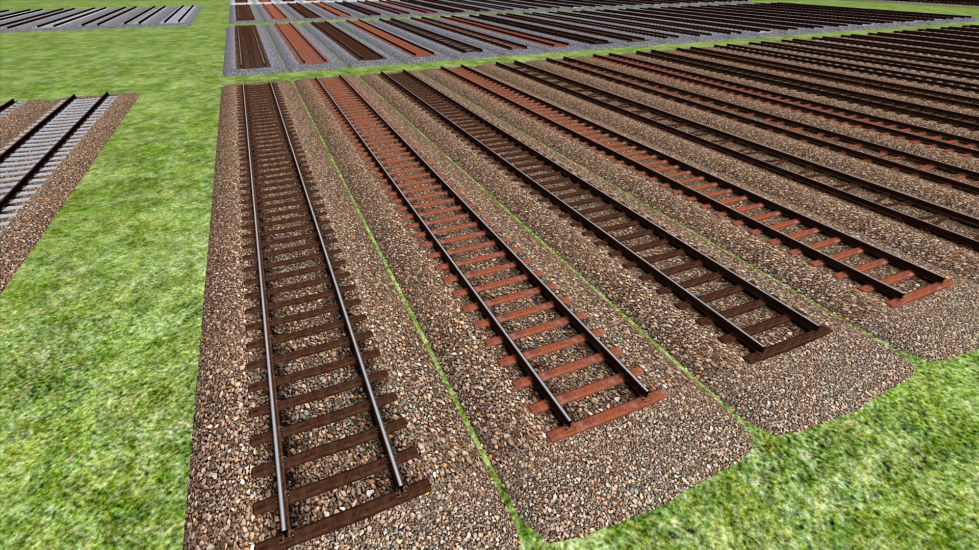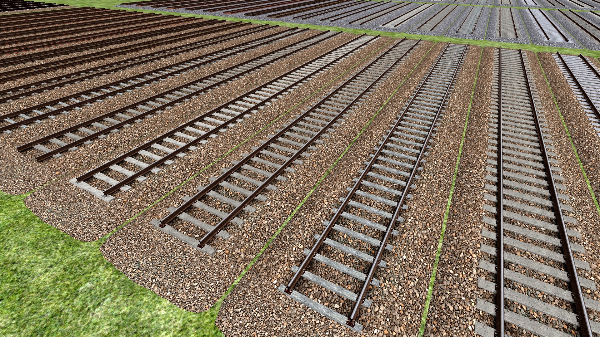 - Komplettes Gleisset für Normalspur (1435mm) und Schmalspur (1000mm + 760mm)…Schon länger hatte ich vor, auch unseren Gleisinfrastruktur-Ordner als seperaten Download hier zu integrieren, jedoch waren dort bisher nie genügend Objekte enthalten. Dies hat sich nun geändert, denn seit einigen Wochen entwickle ich ein eigenes Gleis-System mit 3D-Schwellen, um dieses zukünftig auf meinen Strecken einzusetzen.