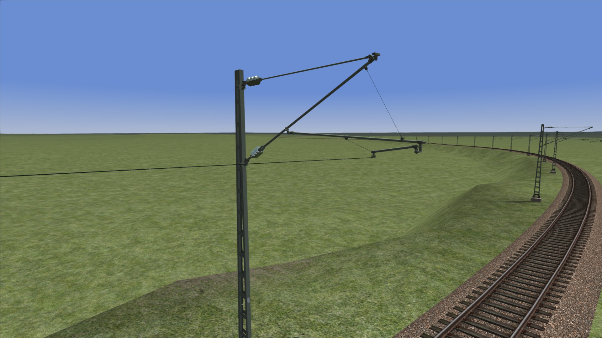 Ich habe die mal als Test auf einer kleinen Teststrecke von mir verbaut, mit dem Masten setzen ging das auch gut. Als ich dann aber die Oberleitung dranhängen wollte hat er mir immer nur den Hauptfahrdraht, aber nicht das Tragseil gebaut, den Hauptfahrdraht gab es immer nur hin und wieder zufällig, aber nie reproduzierbar, dazu. Getestet habe ich das ganze in einer relativ engen Kurve (Radius 340m) wo ausschließlich Push-Masten verbaut waren. Ich hab mal zwei Bilder dazu angehängt.