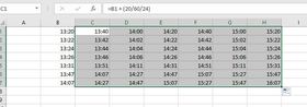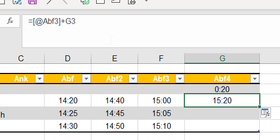 Deswegen meine Frage: Wie kann ich die Tabelle seitlich fortführen, sodass es im 20-Minuten Rhytmus automatisch weitergeführt wird? Ist das überhaupt möglich und wenn ja wie?