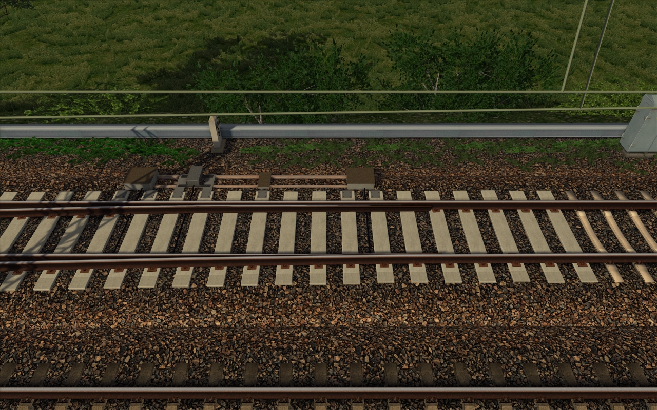 Ich plane jetzt, pro Arbeitstag eine Weiche so auszugestalten. Mehr machen meine Nerven vermutlich nicht mit. Wie erwähnt steckt da ein Haufen Zeit drin. Zunächst müssen alle Schwellen einzeln platziert werden (Weiche liegt noch dazu in einem leichten Gefälle). Dann müssen diese auf die richtigen Maße angepasst werden (2D Textur verschwindet darunter). Wenn man das sorgfältig und sauber macht, sind gute 45 Minuten rum. Dann das gleiche Spiel mit den Gleisklammern (und ja, die sind ebenfalls 3D, werden aber wahrscheinlich noch angepasst werden müssen wegen Performance).