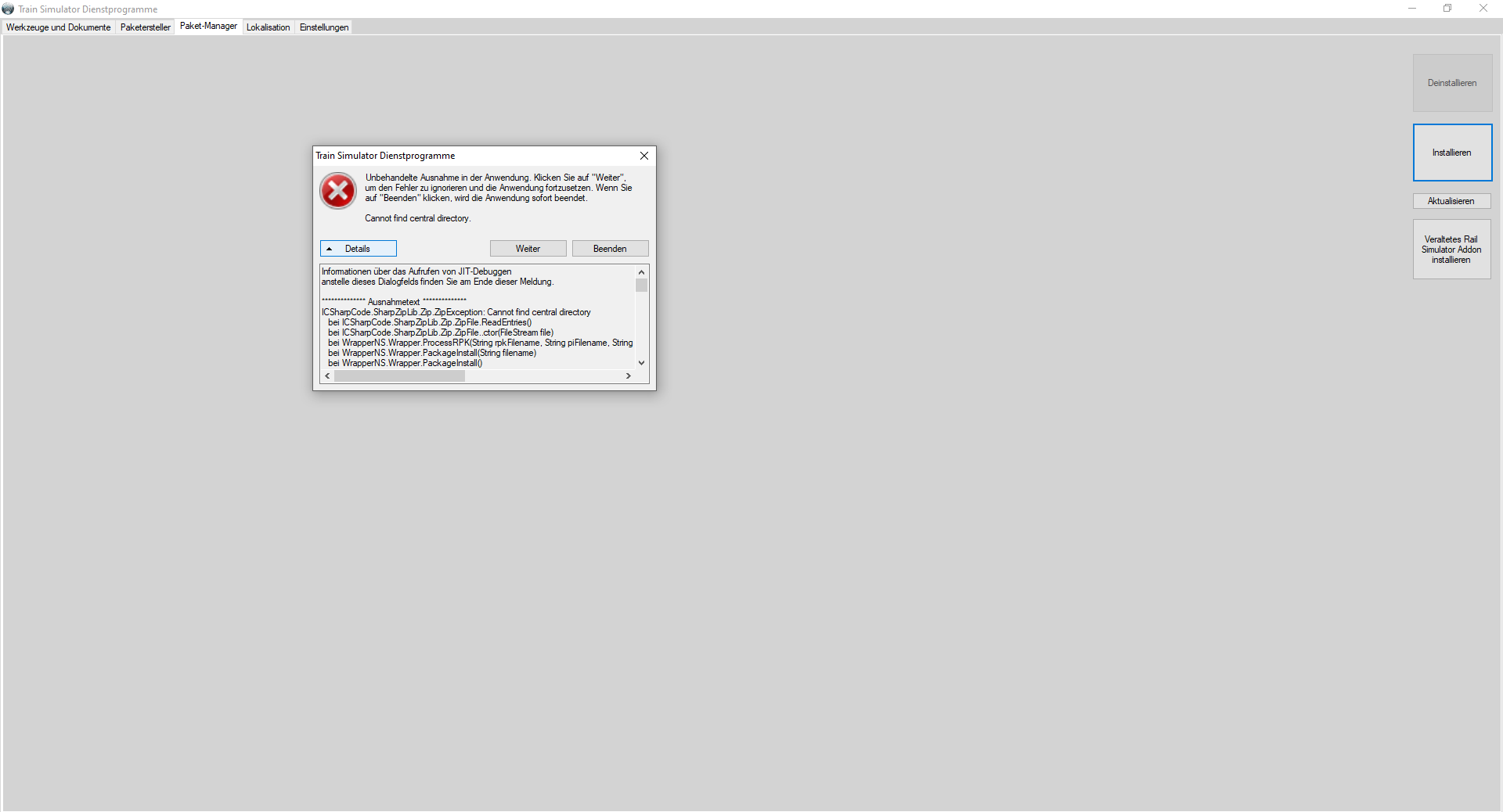 Hallo kann mir wer helfen bekomme immer wenn ich den vR BR185 "Railpool CargoNet" Repaint auf den Train Simulator mit Utilities installiere immer eine Fehlermeldung .