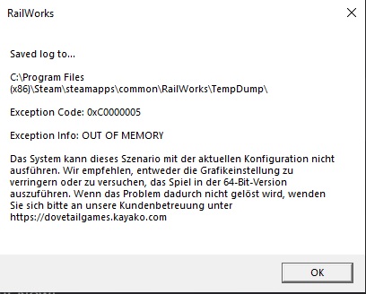 Manchmal tausche ich nur die Lok oder mehr Rollmaterial aus und es kommt kein CTD mit "OUT OF MEMORY" Fehler.