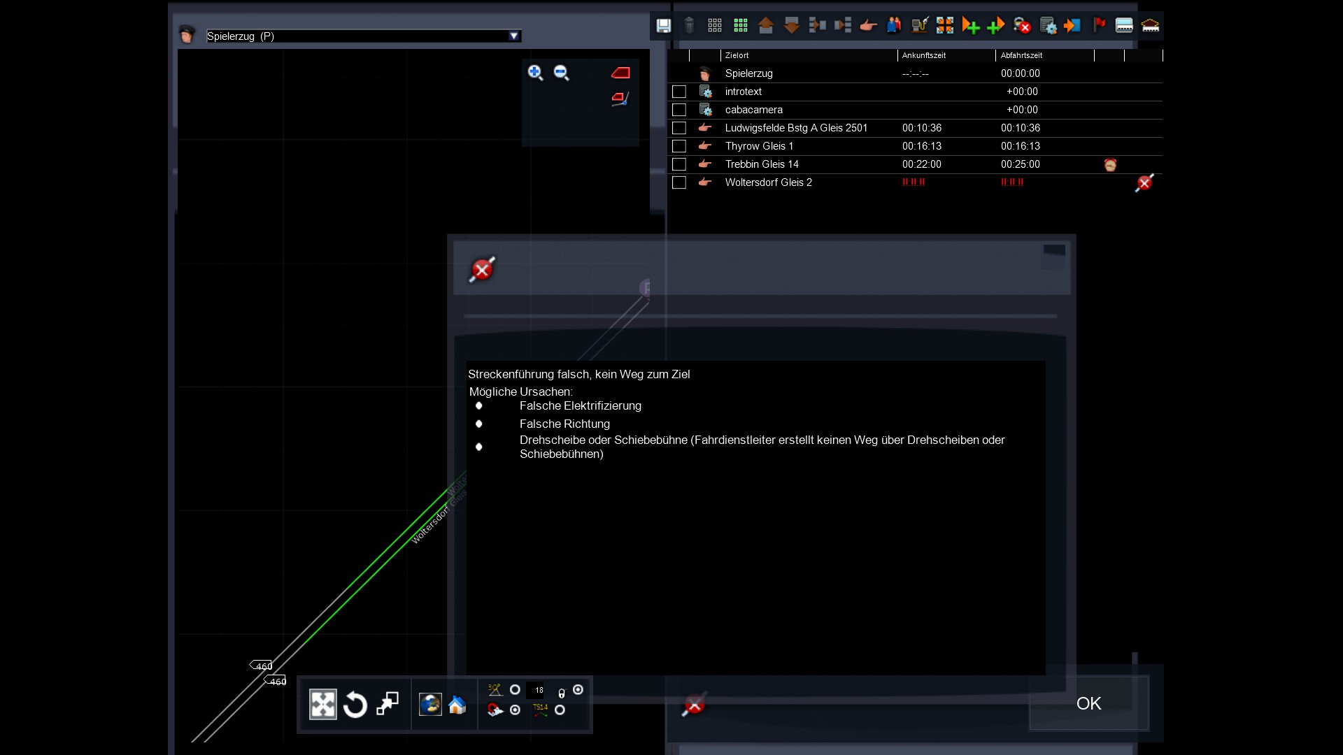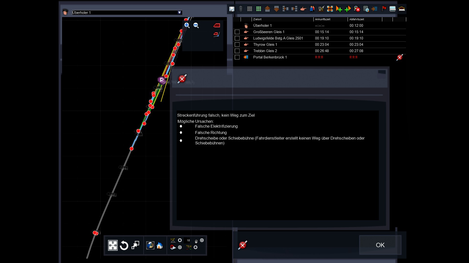 Hallo Zusammen. Beim Szenariobau, komme ich nicht mehr weiter, nach einer Überholung meckert der Dispatcher rum, das die Elektrifizierung falsch ist?