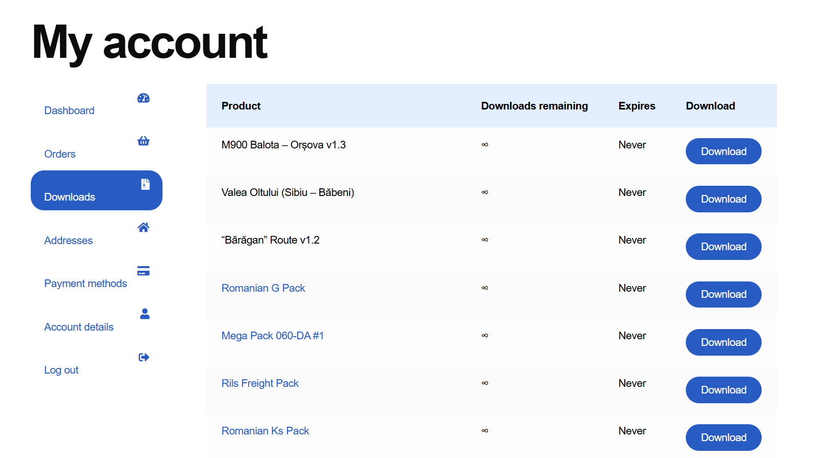 Die Fahrzeuge lassen sich von meinem Account herunter laden. Aber fuer die Strecken habe ich keinen Link mehr gefunden, weder in "Downloads" noch in "Orders".