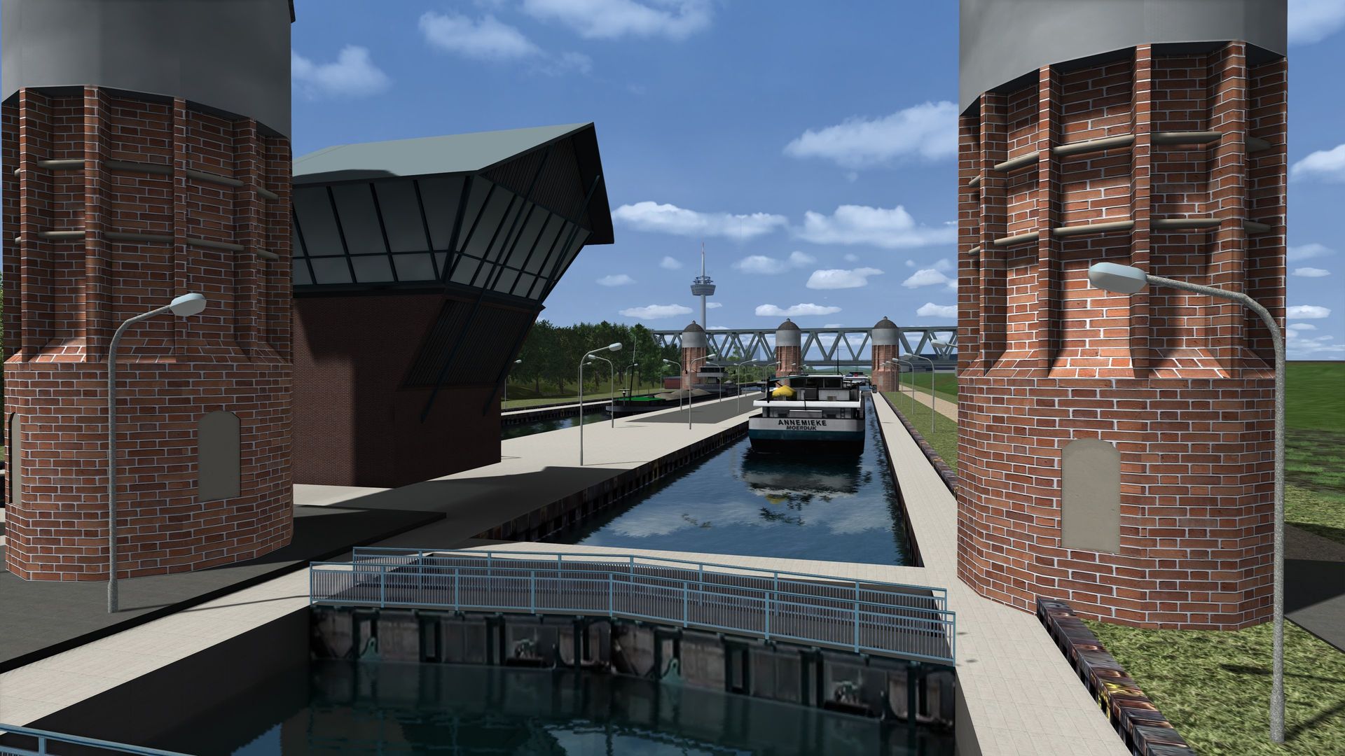Auch die Ausgestaltung auf unserem neuen Anbaustück, der östlichen Riedbahn, nimmt so langsam Gestalt an. Die Neckarschleuse und Feudenheimer Brücke wurde nachgebildet.