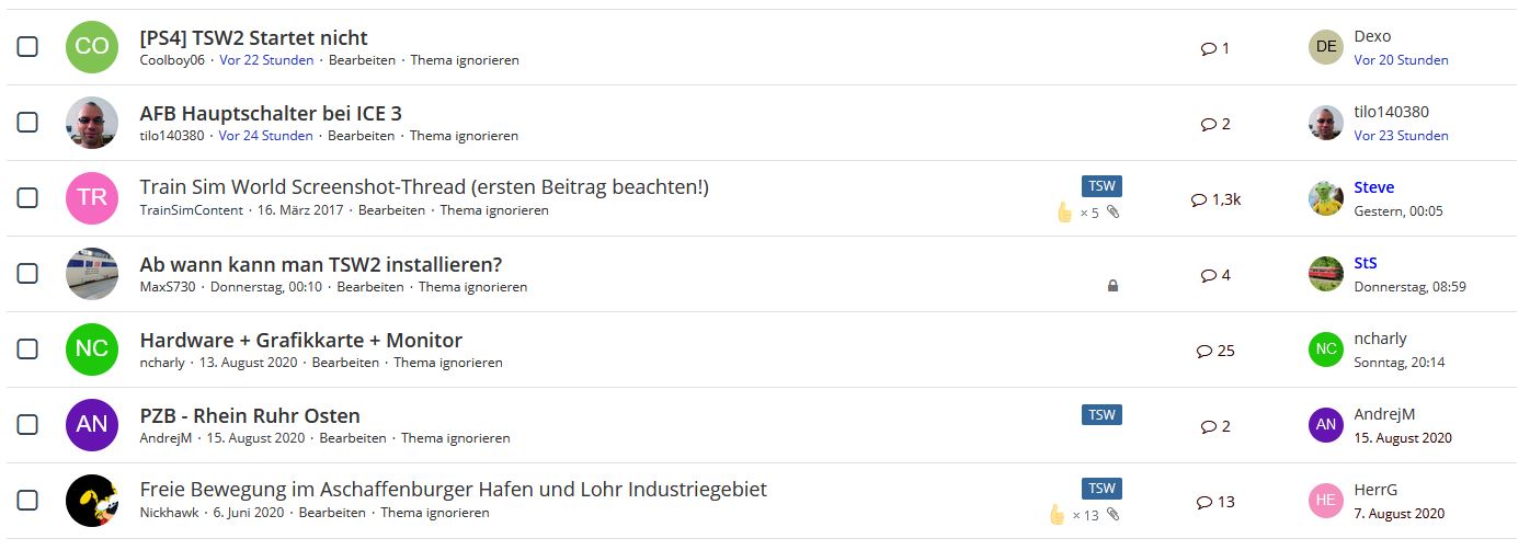 Die Threads aus "Train Sim World 2" haben wir in den Bereich "Train Sim World" verschoben und die darin enthaltenen Threads haben wir mit einem "TSW" Label versehen. (siehe Bild)