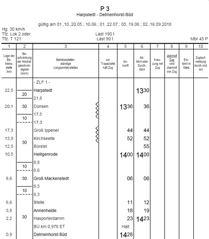 Spalte 3: Bahnhöfe, Langsamfahrstellen usw