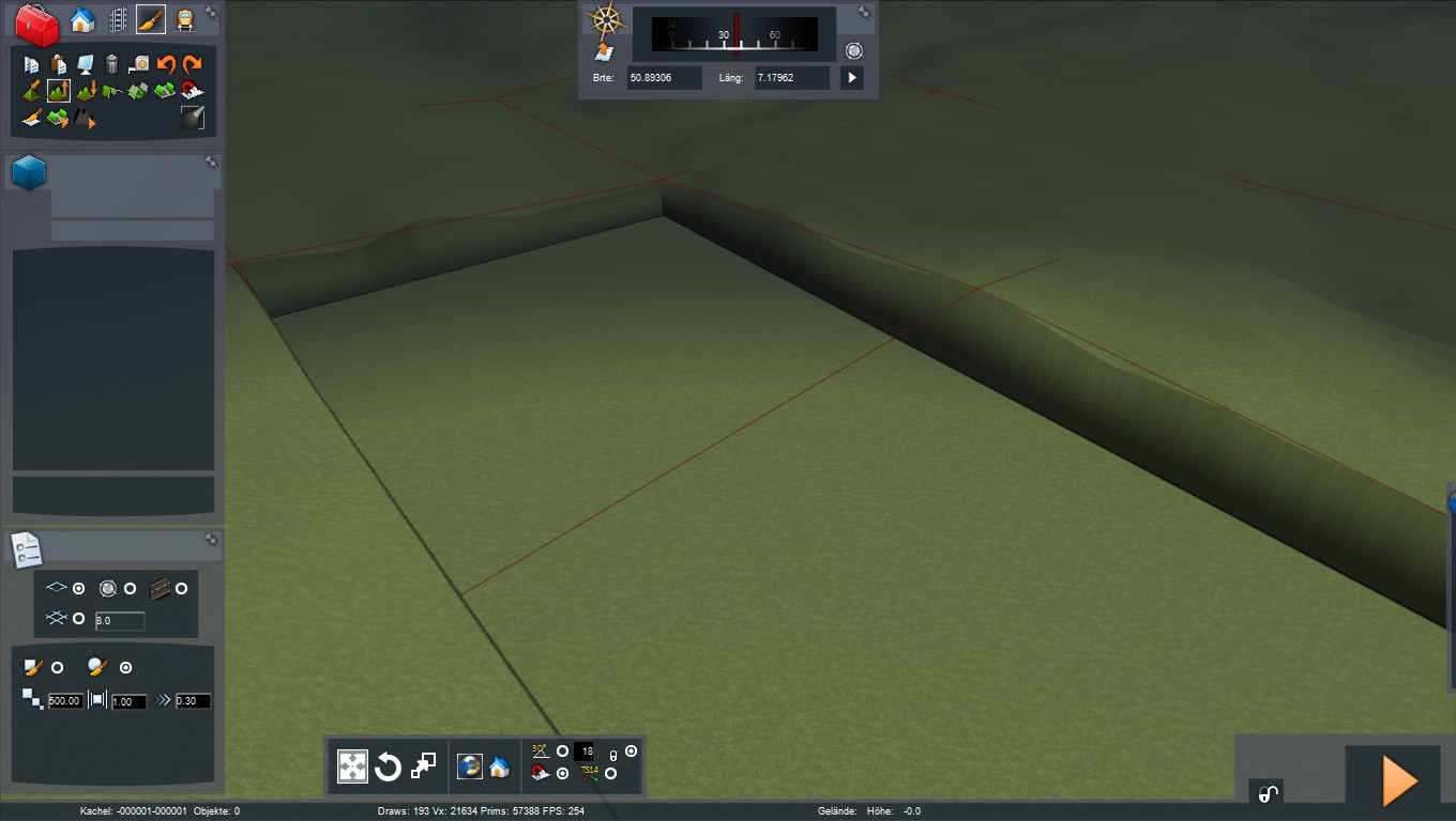Ich habe ein Problem mit dem DEM-Gelände. Ich habe hier(https://dds.cr.usgs.gov/srtm/version2_1/SRTM3/Eurasia/) die hgt-Datei heruntergeladen und sie unter Railworks\DEM\SRTM eingefügt. Im Welteditor dann habe ich das DEM-Gelände eingefügt. Allerdings war Kachel +000000+000000 und Kachel +000000-000001 immernoch flach.