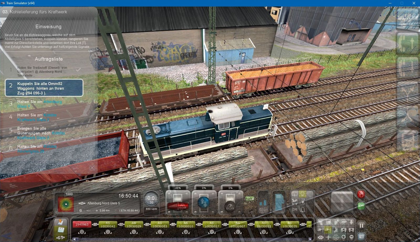 Allerdings habe ich heute ein Problem bei der Karriere-Aufgabe 03. Kohlelieferung fürs Kraftwerk mit der BR294 DBAG Blau (Kuja).