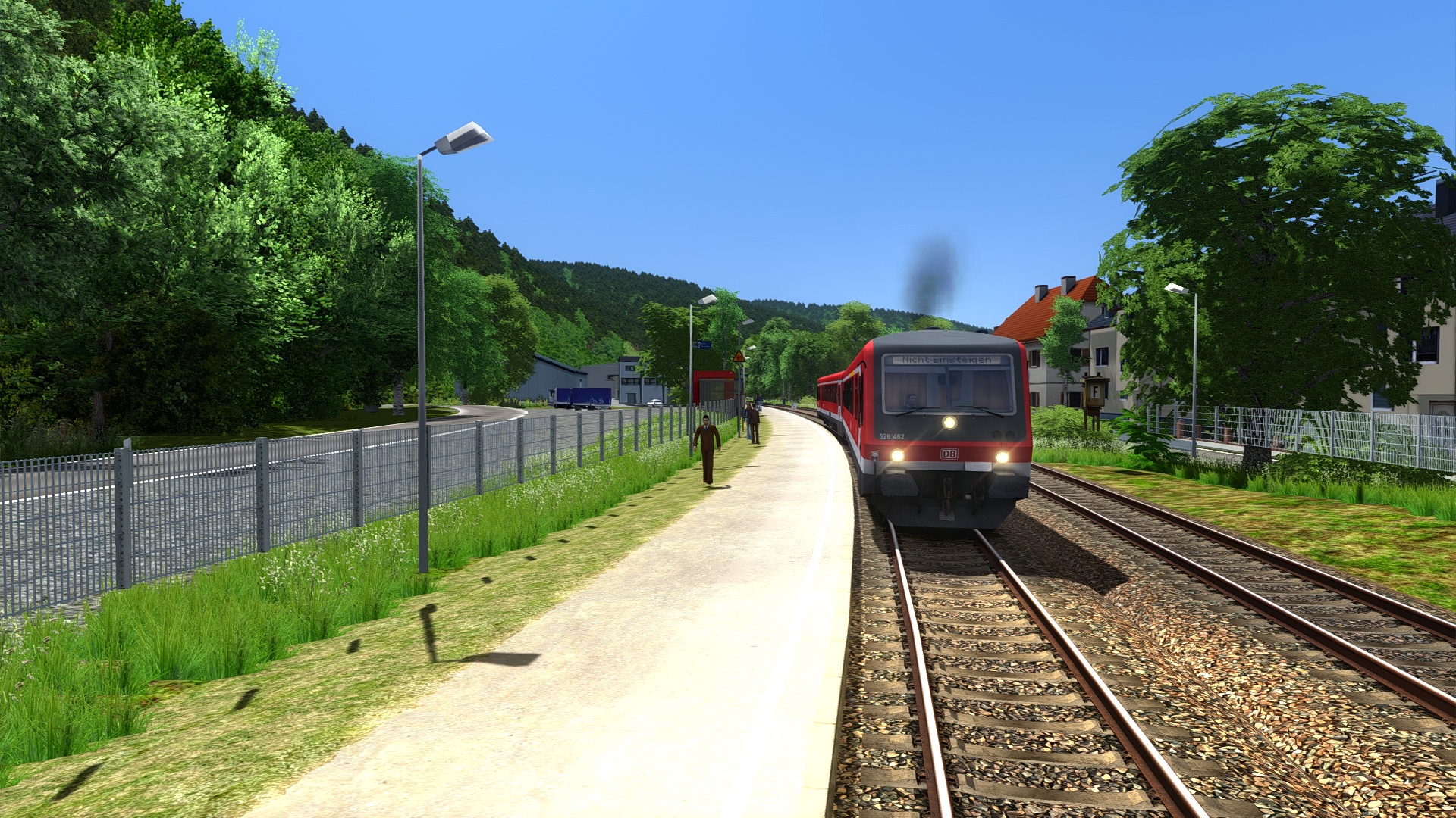 Türen gehen auf dem Bahnsteig nicht auf. Den unsichtbaren Bahnsteig mal doppelt anklicken, so das die blauen Stecknadelköpfe sichtbar werden. Dann jeden einzelnen blauen Stecknadelkopf anklicken und so verschieben bis zu den Bahnsteigkannten. Mann kann dies Stecknadel auch so verschieben, dass Personen um Gegenstände wie zB Bänke herumlaufen.