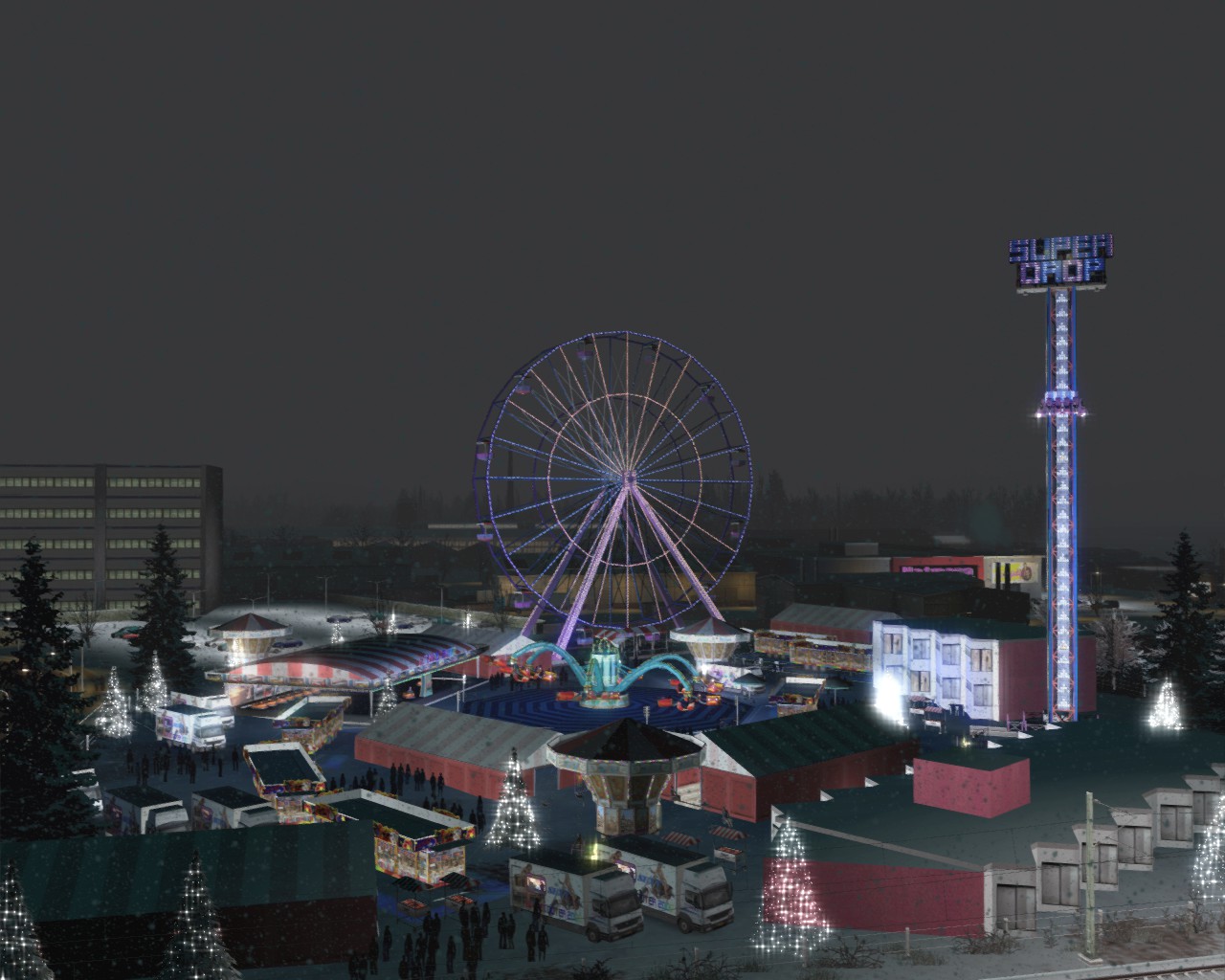 Guten Morgen, ich habe mal 2 Fragen, gibt es irgendwo Kirmes Karussells, wie Riesenrad, Buden, Autoscooter usw. ?