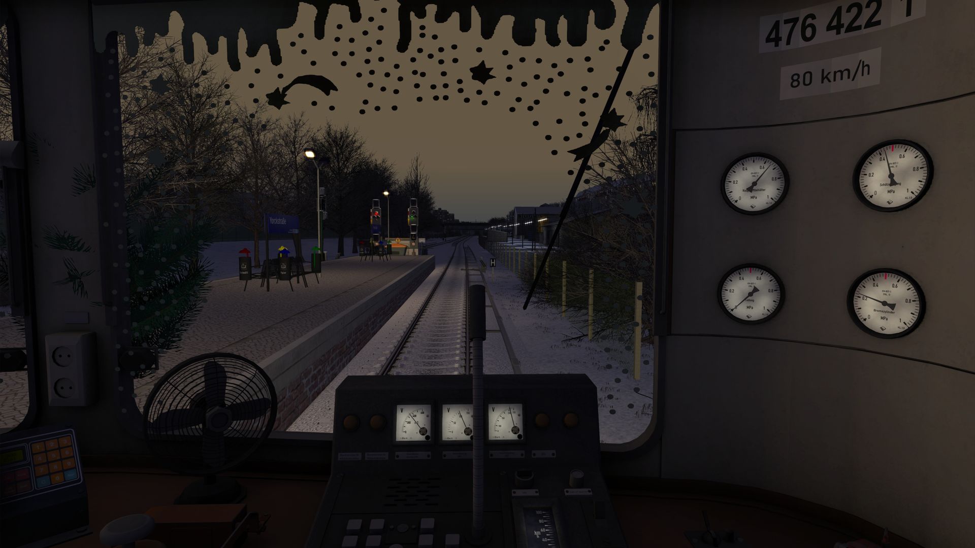 Der Scheibenwische wischt recht Langsam, weil mein Rechner am Limit läuft, dadurch sind Signale und Bahnsteige fast nicht zuerkennen.