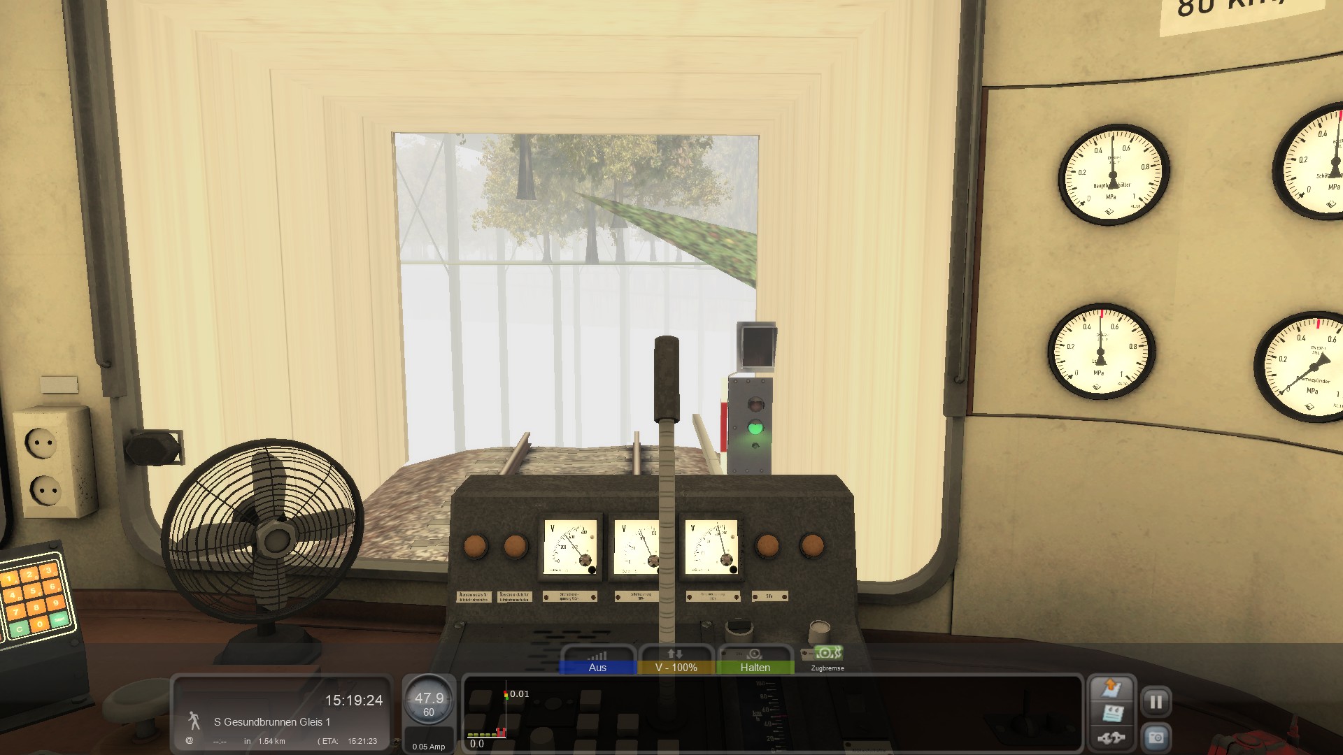 2. Scheinen die Züge ja in Echt irgendeine Art ep-Bremse gehabt zu haben, die zu einer mehrlösigen Bedienbarkeit führt. Und es gibt wahrscheinlich auch im S-Bahn-Netz Berlin irgendwo Bahnsteige, an denen man nicht ungebremst stehen kann, weil man schlichtweg wegrollen würde. Eisenbahnfahrzeuge sind unheimlich empfindlich gegenüber Neigungen. Ich habe kein Problem damit, den Zug zielsicher zum Stehen zu brigen. Ich möchte ihn nur im Stillstand festhalten, was, weil die Bremse einlösig ist, nur noch mit Schnellbremsung oder Handbremse möglich ist.