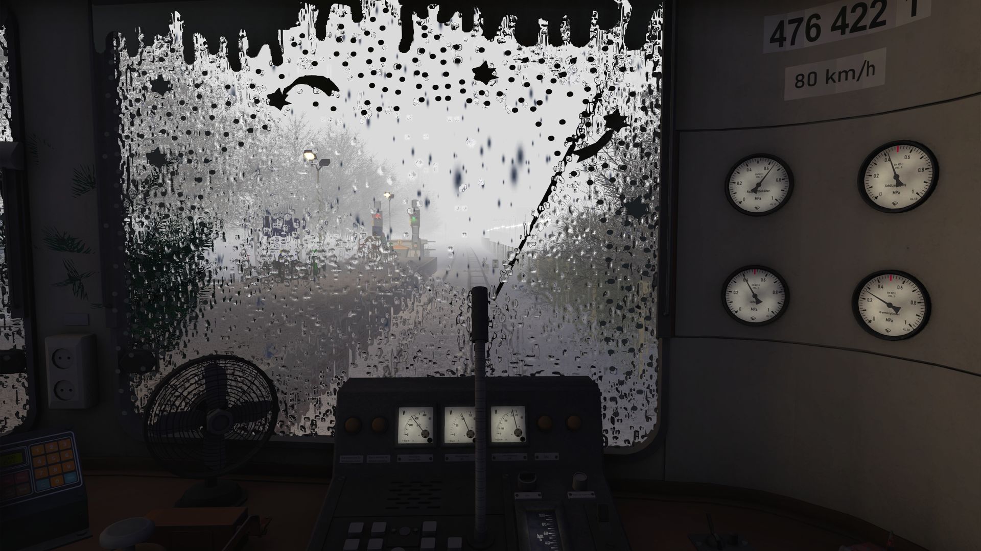 Der Scheibenwische wischt recht Langsam, weil mein Rechner am Limit läuft, dadurch sind Signale und Bahnsteige fast nicht zuerkennen.
