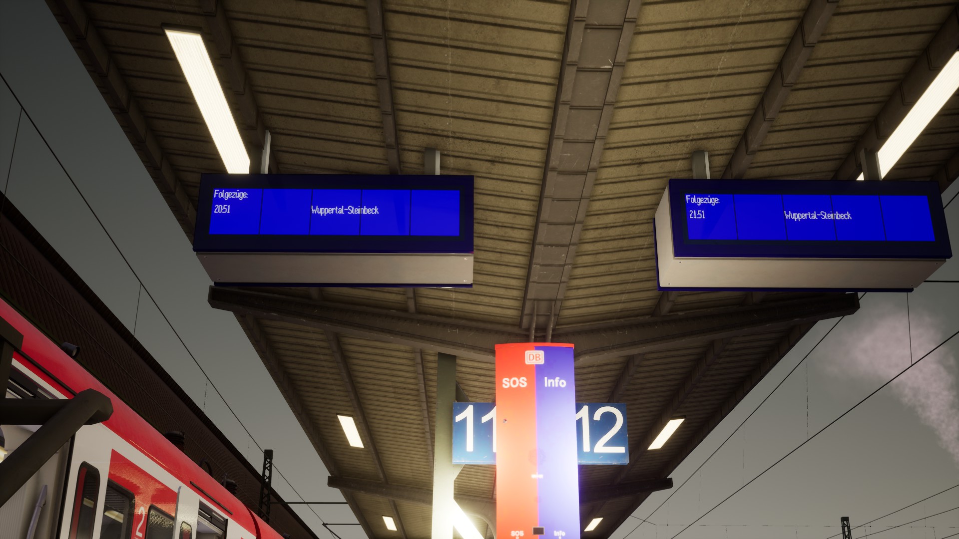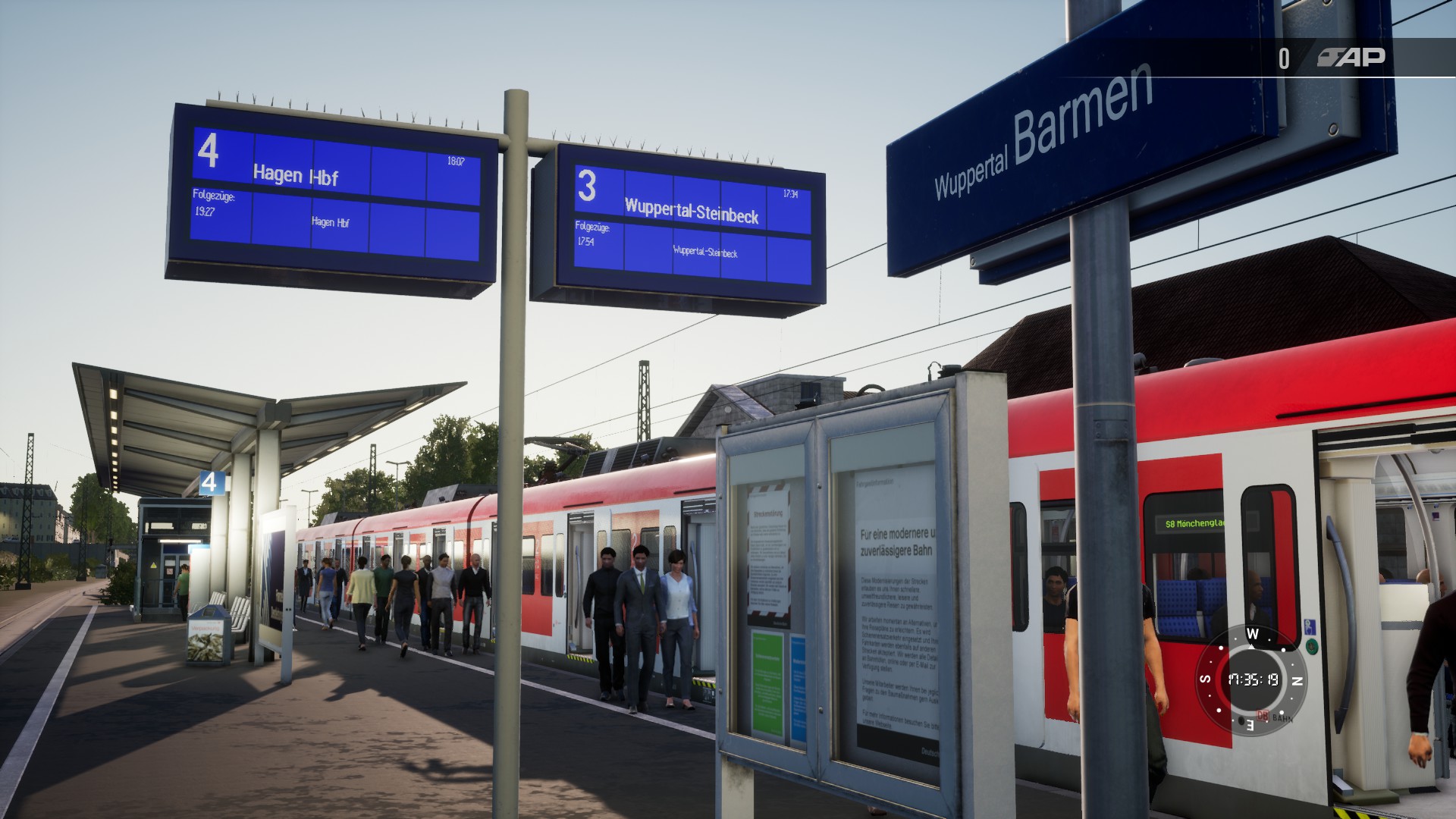 Edit: Mein Test hat gezeigt, dass es genau so funktioniert wie auf HMA. Verspätungen werden angezeigt. Aber da die neuen FIS Anzeigen die alten ersetzen, haben Bahnhöfe, die vorher keine Anzeigetafeln hatten, jetzt immer noch keine. Nur bei mir werden keine Zugnummern angezeigt, also nicht, dass der Zug nach Steinbeck die S8 ist, sieht man auch auf den Bildern.