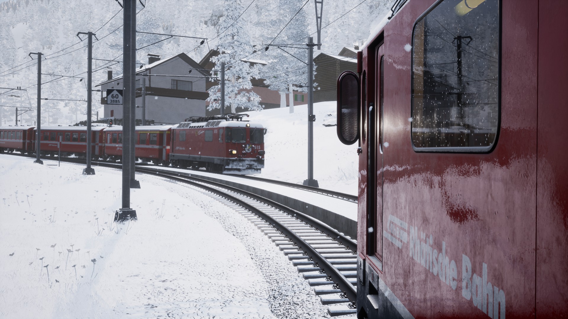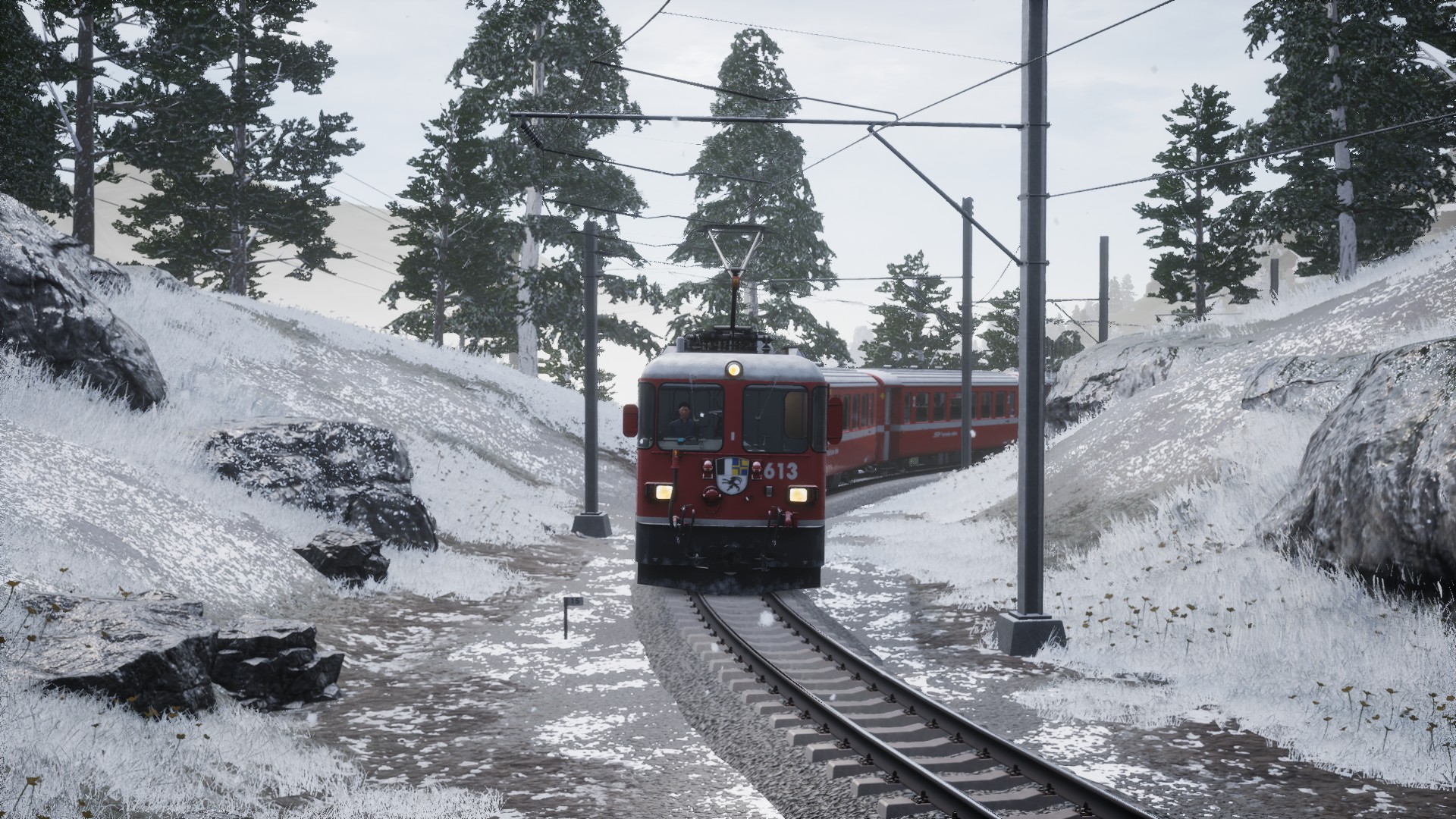Was ich gerade bei meiner Fahrt ganz schön fand, ist dass erstens die Sounds (Scheibenwischer, Pfeife) durchgehend funktioniert haben (War bei der ersten Fahrt nicht so) und dass wenn man in Chur im Frülingsregen losfährt, man in Arosa im Schnee ankommt, das Wetter wechselt ungefähr ab Peist. Also fast sowas wie Dynamisches Wetter, nur geplant.