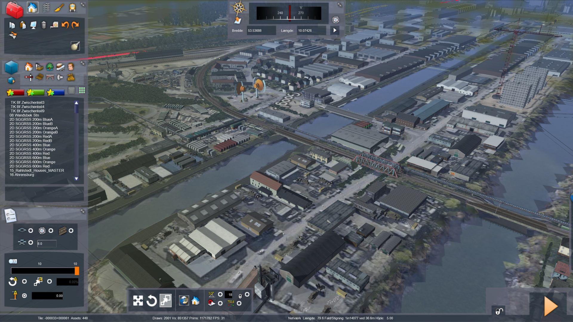 There are around 8 km landscape missing on the "Güterumgehungsbahn". The rest of the route are finnished 99,9%. I am only missing the new 3D modell of Kiel hbf.