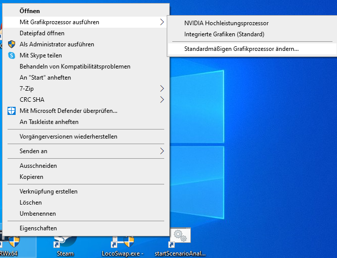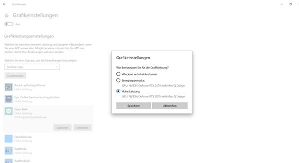 Rechtsklick auf RWx64.exe und dann standardmäßigen Grafikprozessor ändern (siehe Anhang).
