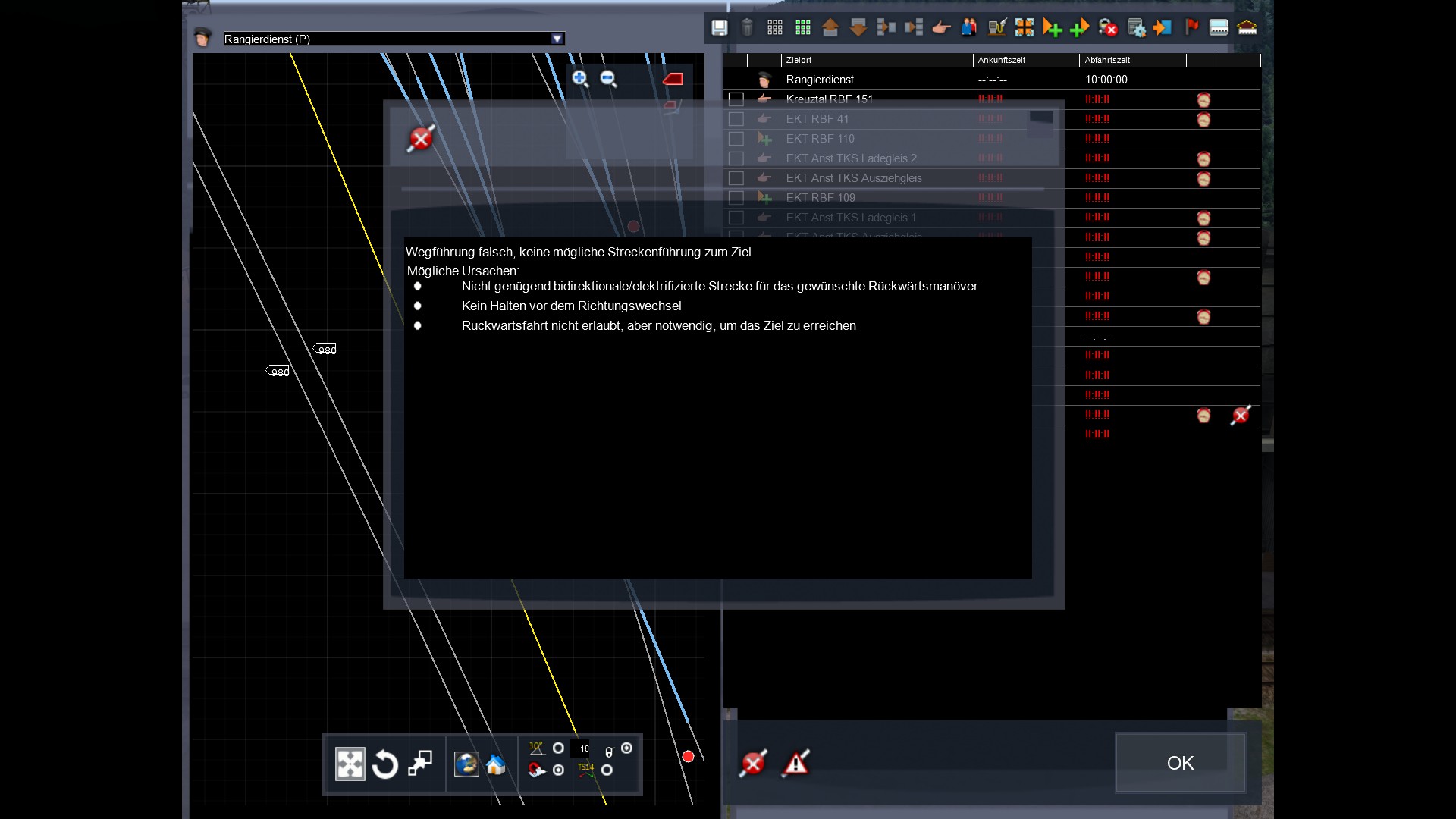 -Nicht genügend bidrektionale/elektrifizierte Strecke für das gewünschte Rückwärtsfahren.