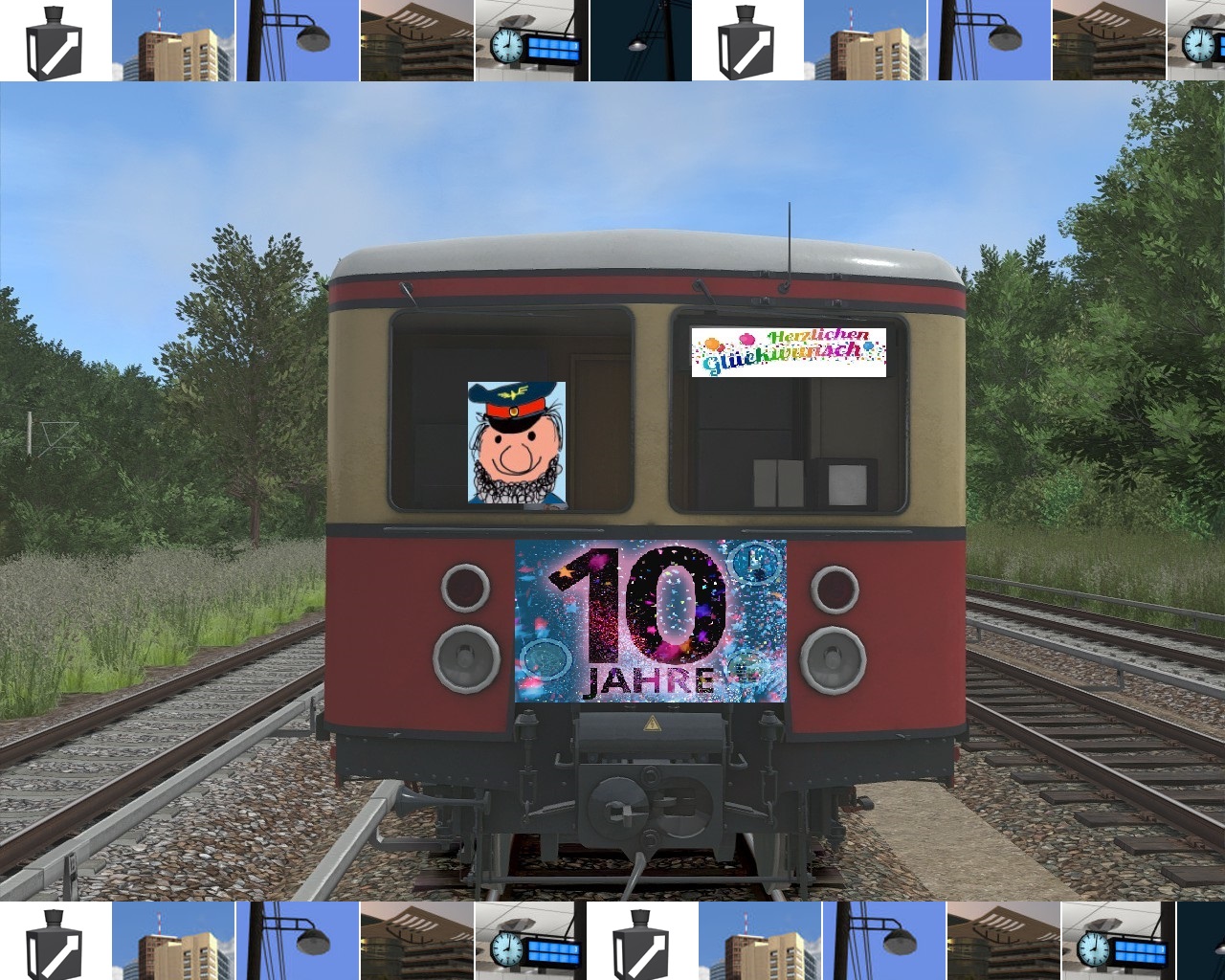 - Glückwunsch zu 10 Jahren virtualTracks!Ich lehne mich einfach mal aus dem Fenster und behaupte, dass Du und Deine Werke die TrainSimulator Szene enorm bereichert haben und fast schon zum Standardinventar eines Jeden gehört - das wird die Ringbahn dann vermutlich auch
